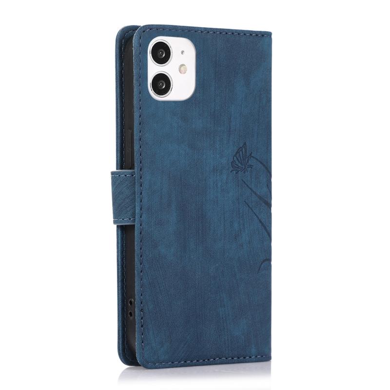 For iPhone 11 Orchid Butterfly Embossed Leather Phone Case(Blue)