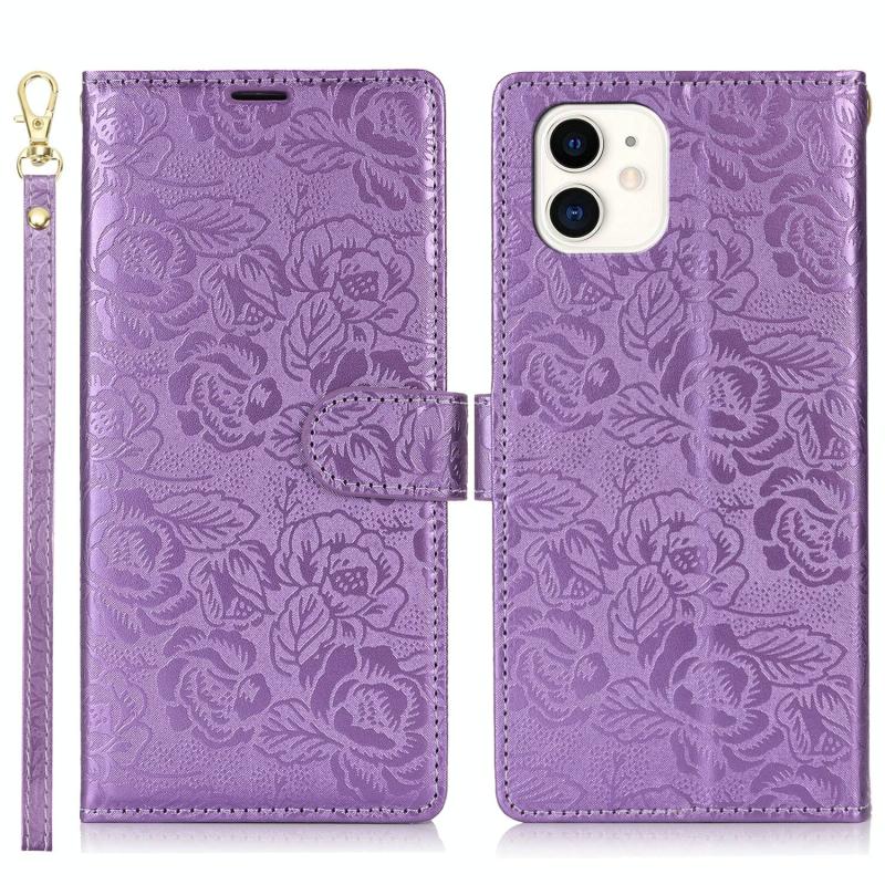 For iPhone 11 Peony Flowers Imprint Leather Phone Case(Purple)