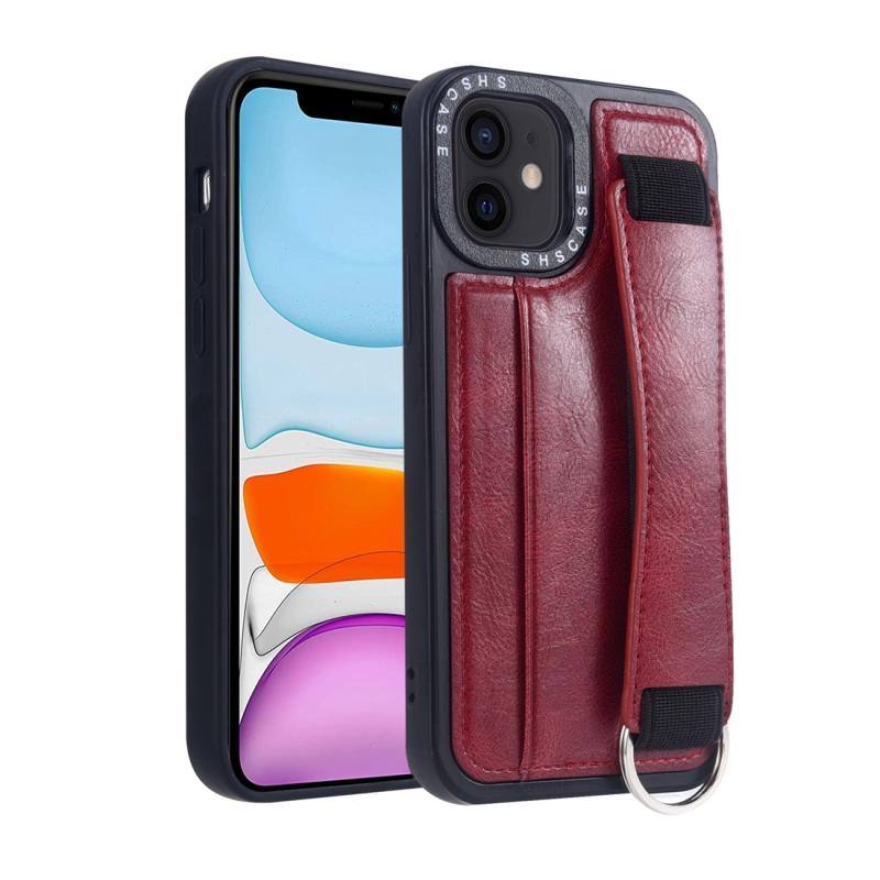 For iPhone 11 Photo Frame Card Wallet Wrist Strap Holder Back Cover Phone Case(Red)