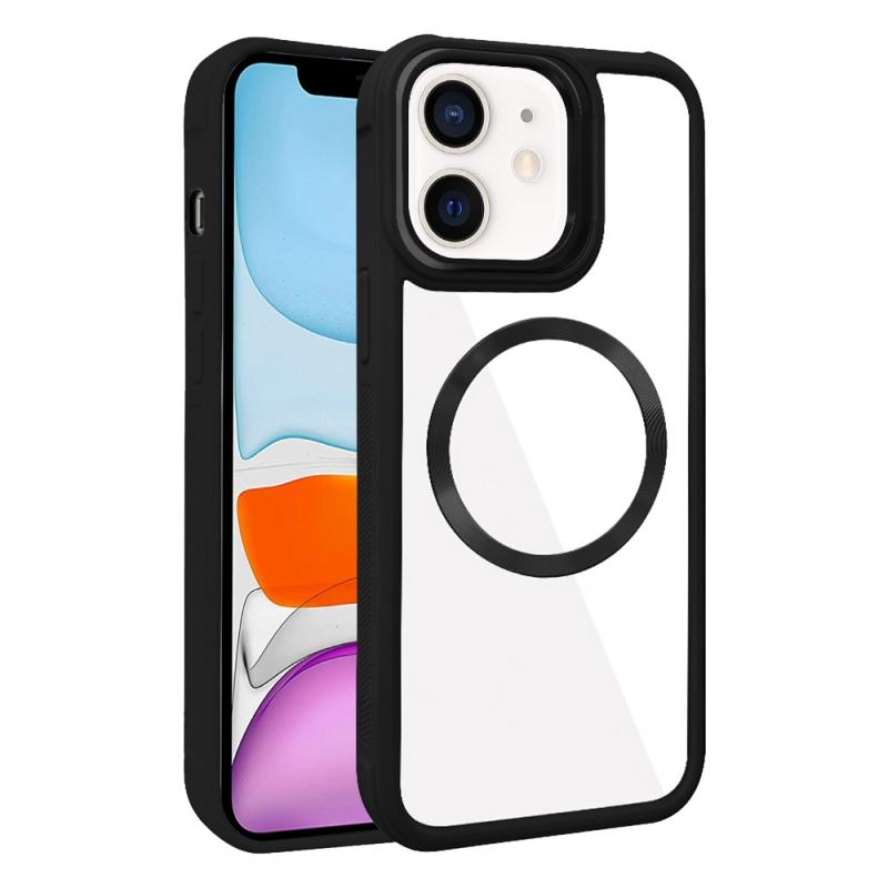 For iPhone 11 Plated CD Texture MagSafe Acrylic Hybrid TPU Phone Case(Black)