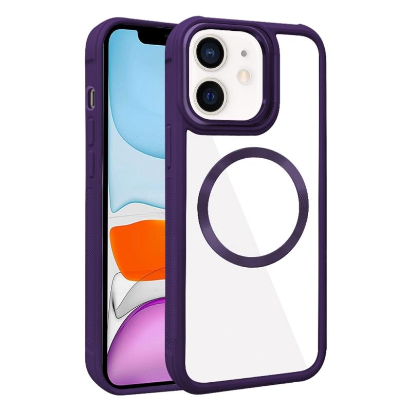 For iPhone 11 Plated CD Texture MagSafe Acrylic Hybrid TPU Phone Case(Purple)