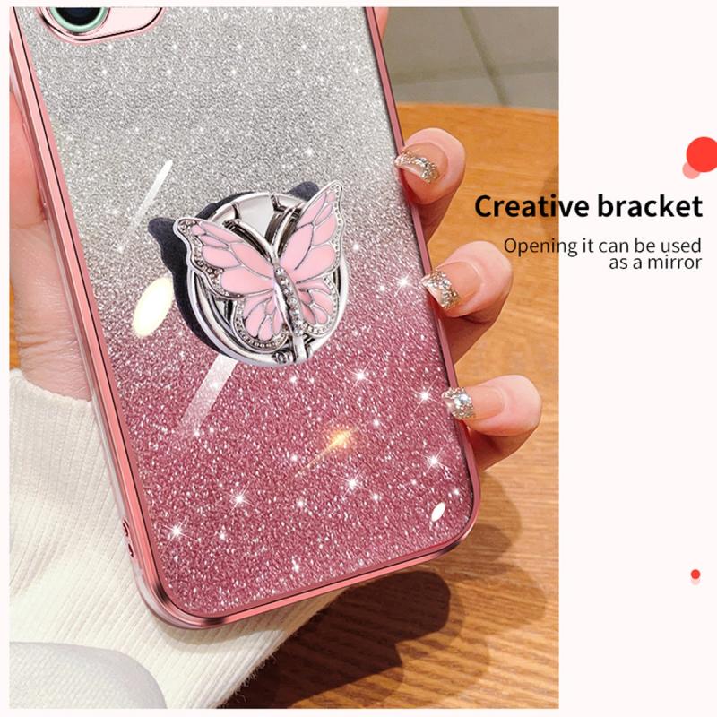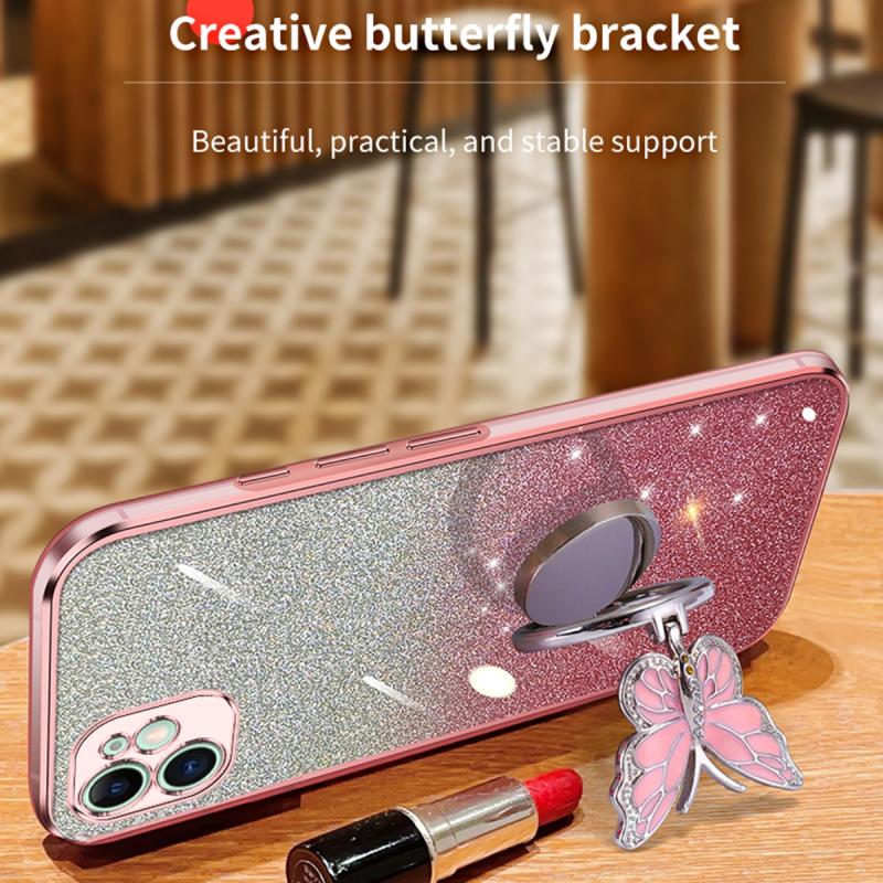 For iPhone 11 Plated Gradient Glitter Butterfly Holder TPU Phone Case(Silver)