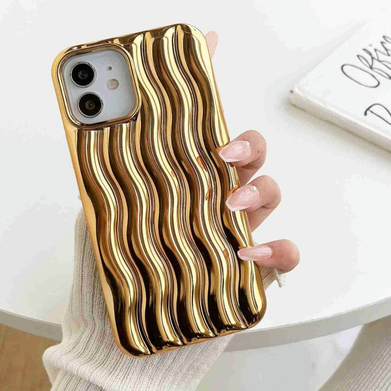 For iPhone 11 Plating 3D Water Wave Texture Phone Case(Gold)