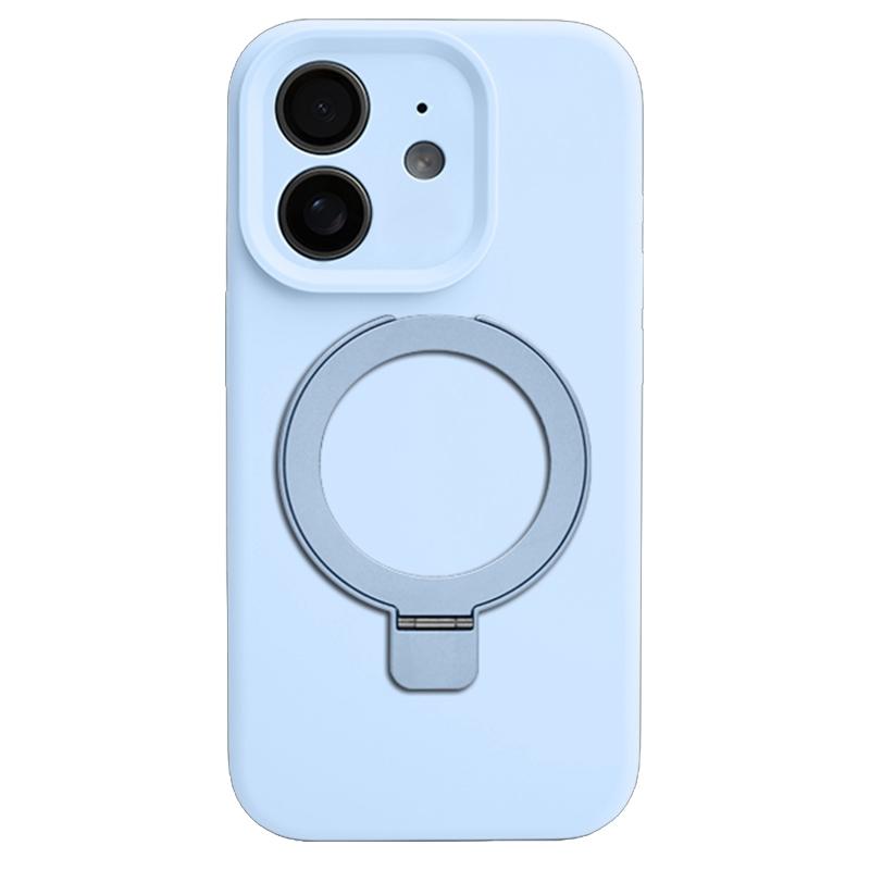 For iPhone 11 Precision Hole Liquid Silicone MagSafe Metal Ring Holder Phone Case(Cloud Blue)