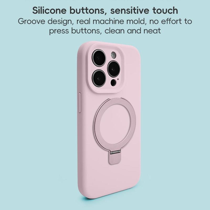 For iPhone 11 Precision Hole Liquid Silicone MagSafe Metal Ring Holder Phone Case(Pink)