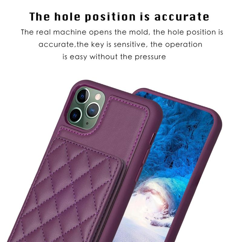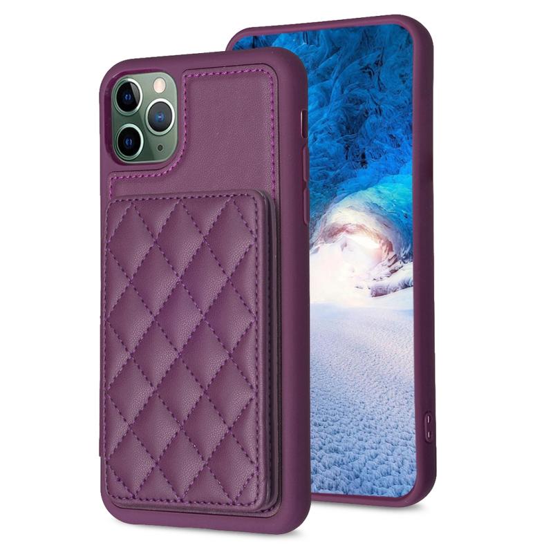 For iPhone 11 Pro BF25 Square Plaid Card Bag Holder Phone Case(Dark Purple)