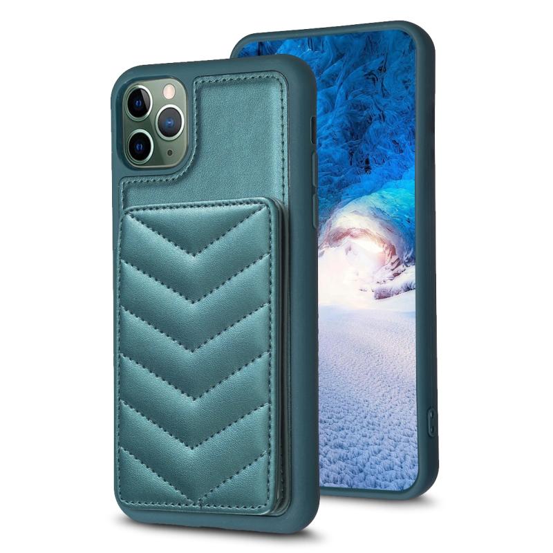 For iPhone 11 Pro BF26 Wave Pattern Card Bag Holder Phone Case(Green)