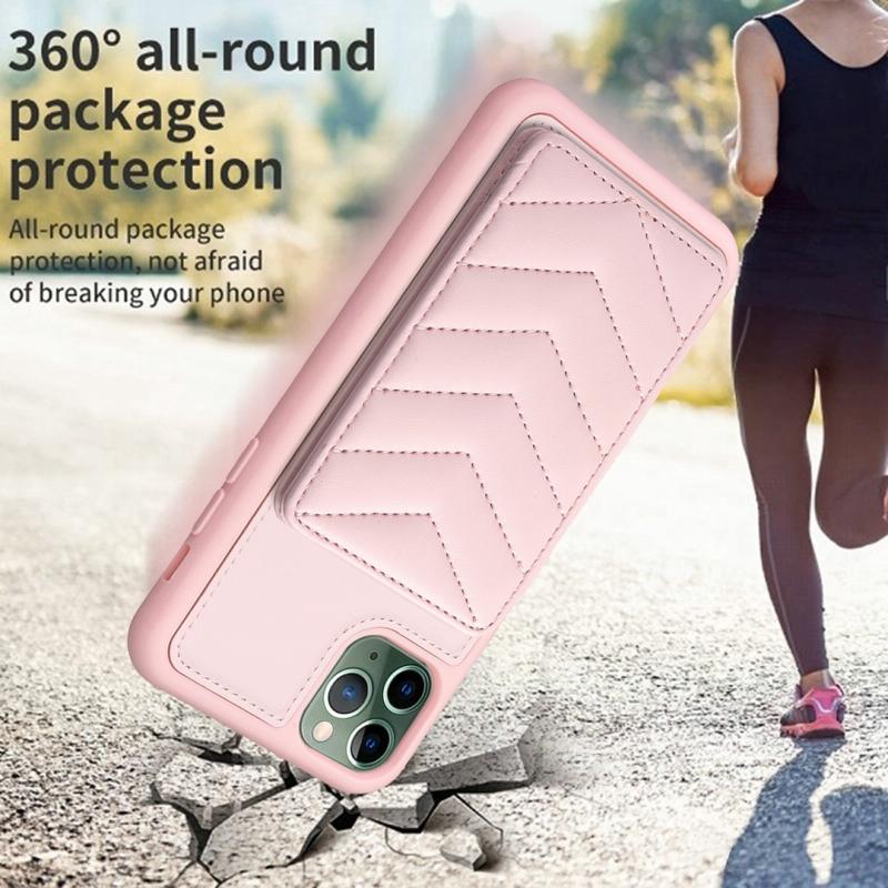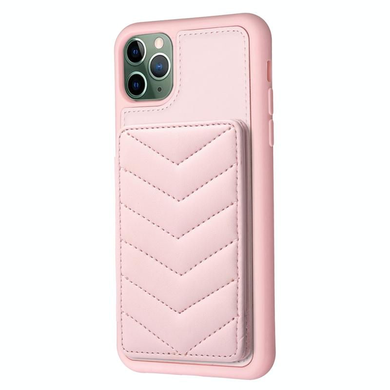 For iPhone 11 Pro BF26 Wave Pattern Card Bag Holder Phone Case(Pink)