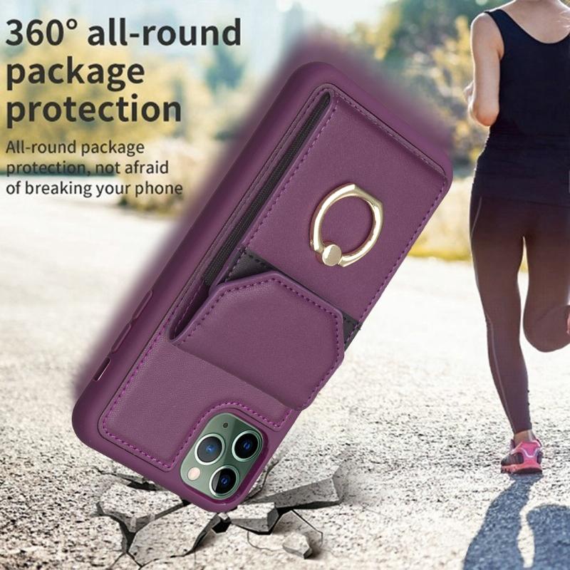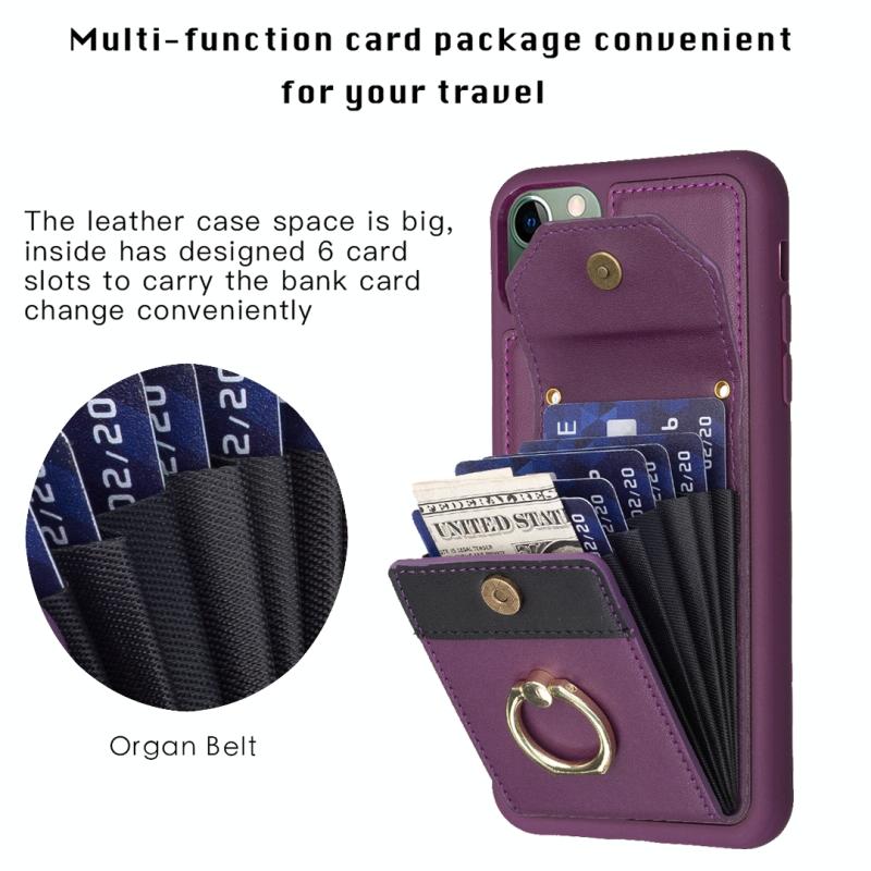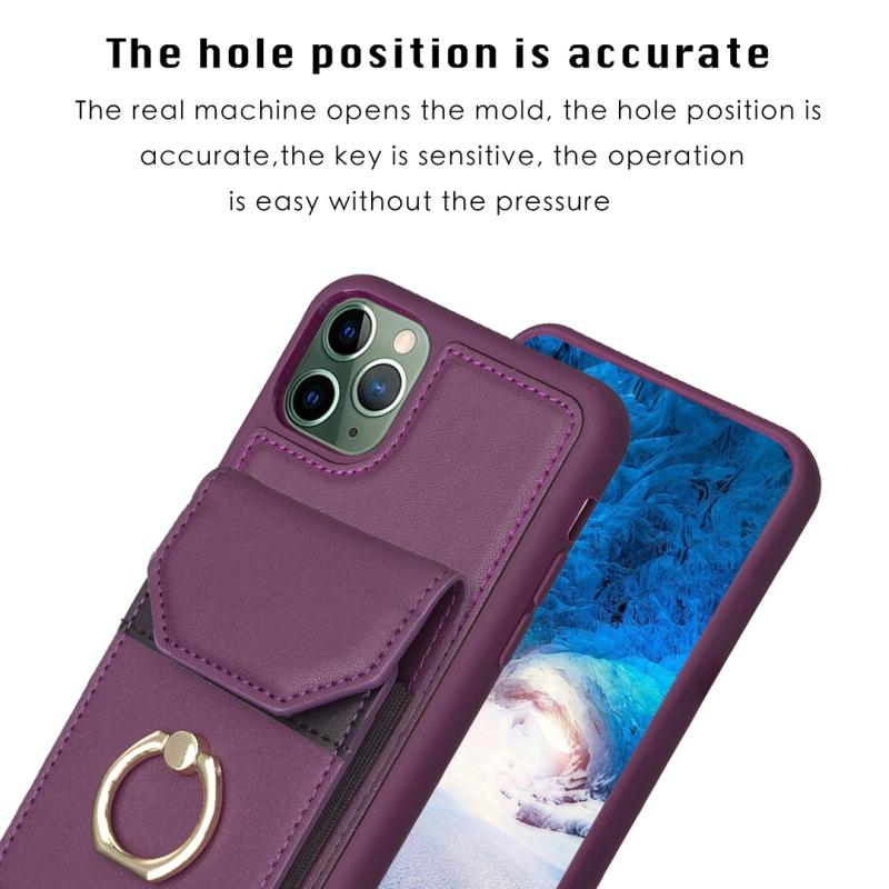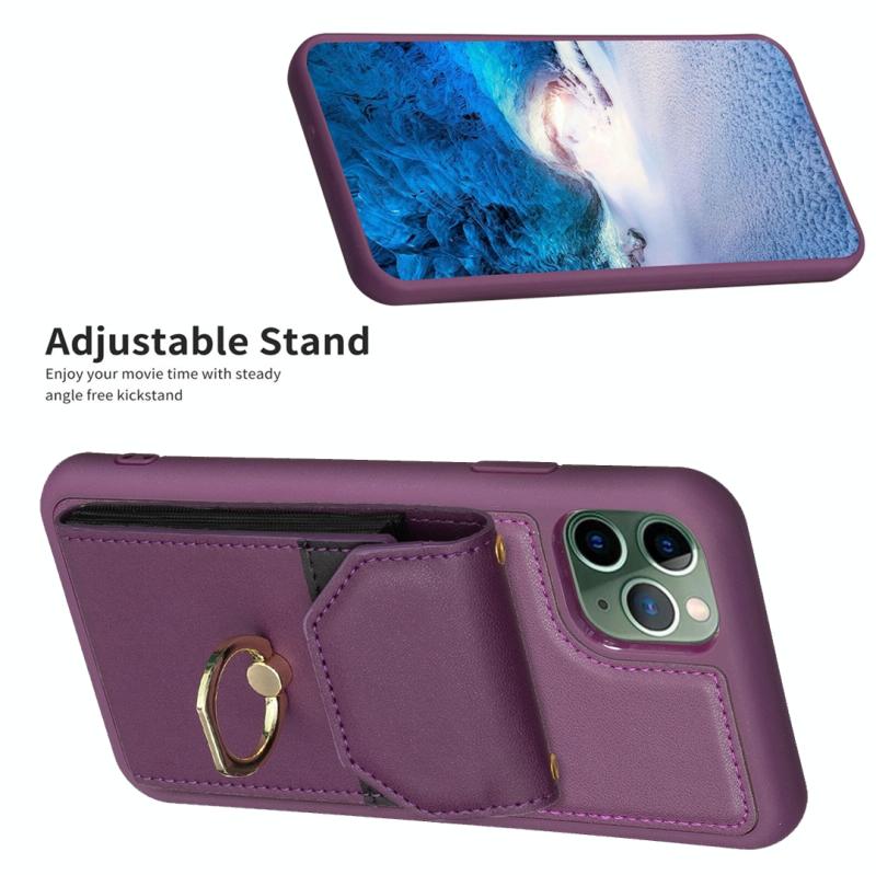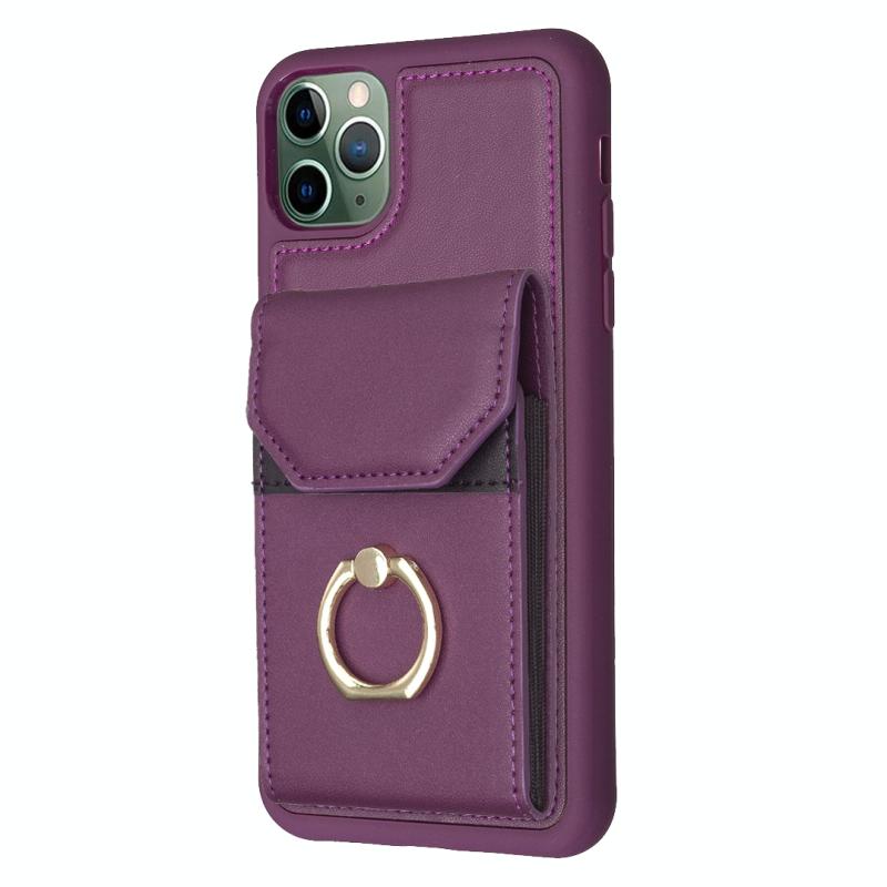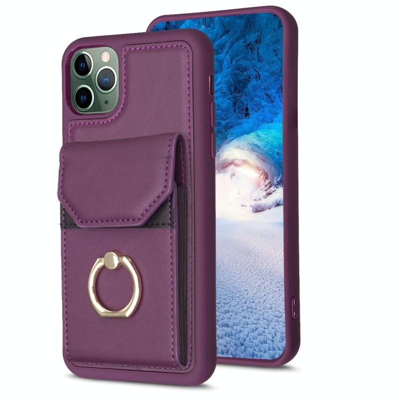For iPhone 11 Pro BF29 Organ Card Bag Ring Holder Phone Case(Dark Purple)