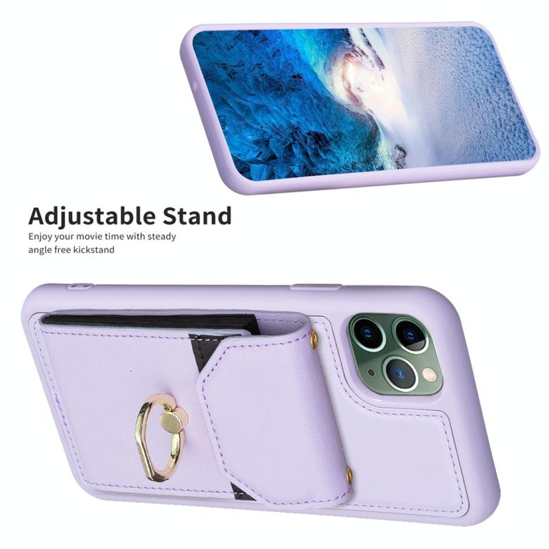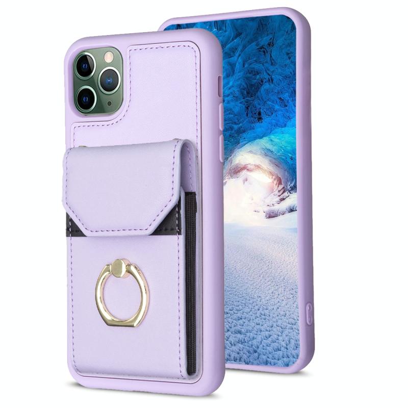 For iPhone 11 Pro BF29 Organ Card Bag Ring Holder Phone Case(Purple)