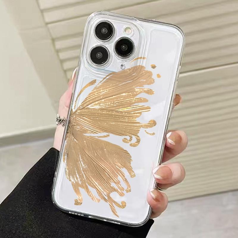 For iPhone 11 Pro Butterfly Pattern Transparent TPU Phone Case(Gold)