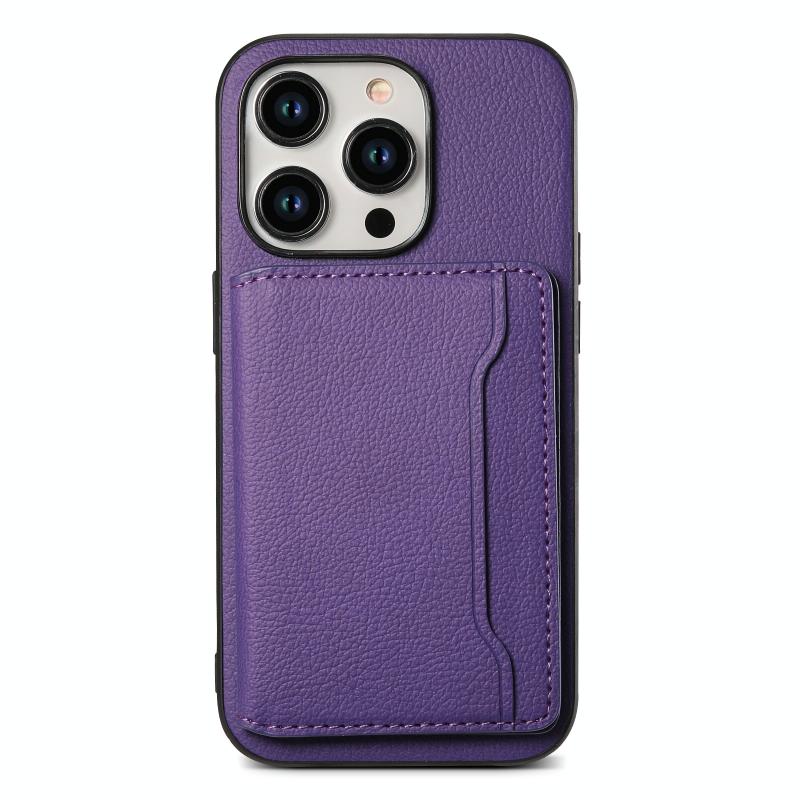 For iPhone 11 Pro Calf Texture Card Bag Design Full Coverage Phone Case(Purple)