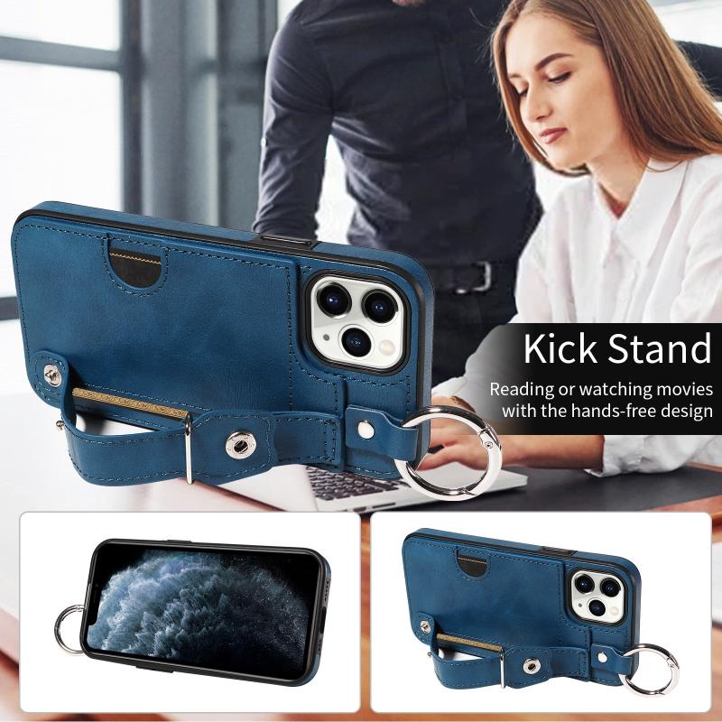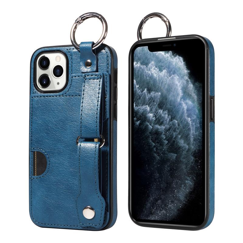 For iPhone 11 Pro Calf Texture Wrist Card Slot Ring Phone Case(Blue)
