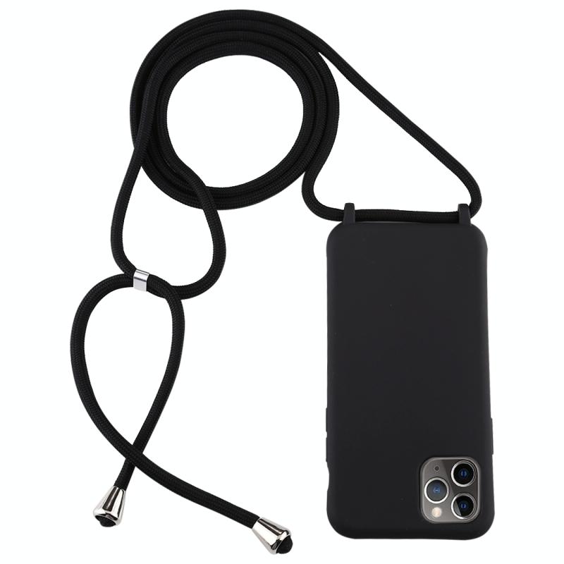 For iPhone 11 Pro Candy Color TPU Protective Case with Lanyard(Black)
