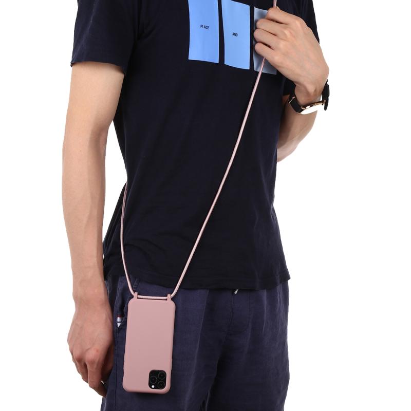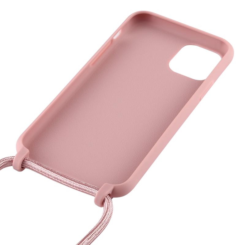 For iPhone 11 Pro Candy Color TPU Protective Case with Lanyard(Pink)