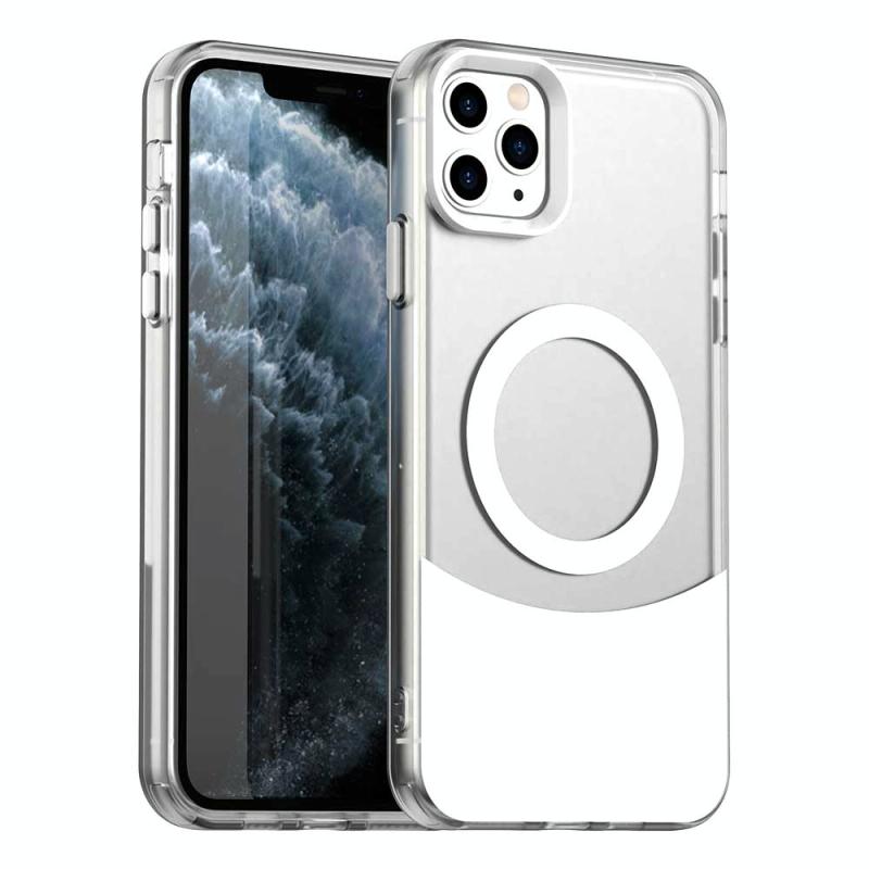 For iPhone 11 Pro Color Blocking Series MagSafe Magnetic PC Hybrid TPU Phone Case(White)