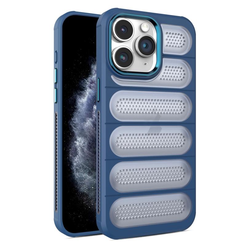For iPhone 11 Pro Cooling Armor Translucent Mesh Breathable Phone Case(Blue)