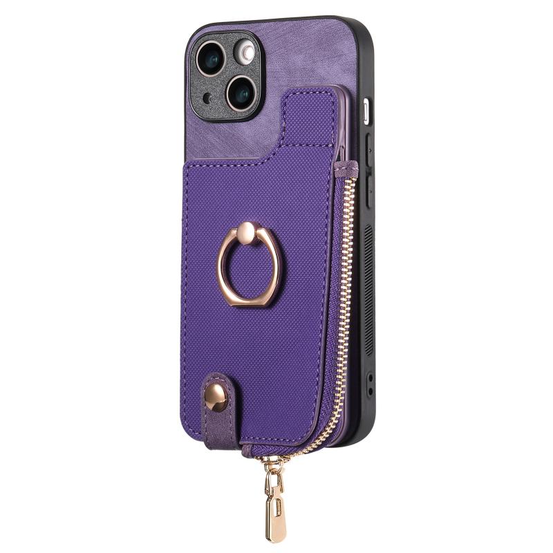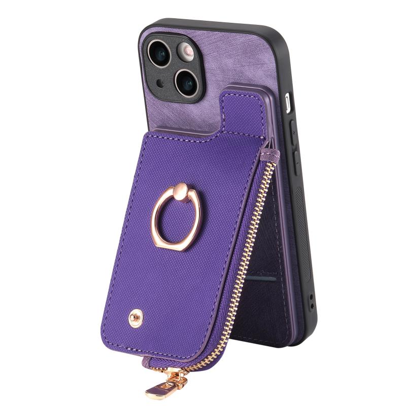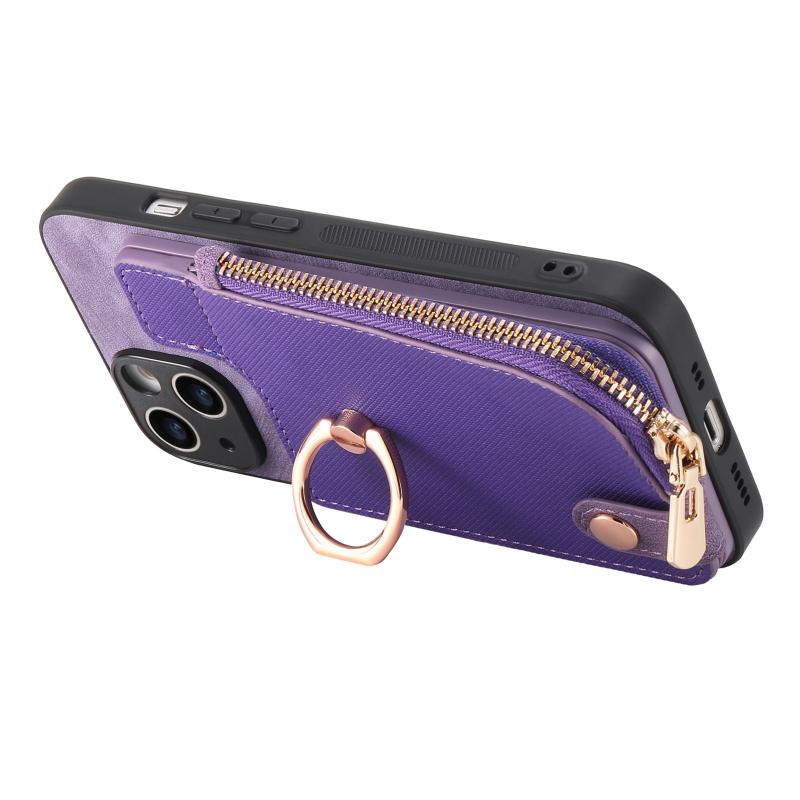 For iPhone 11 Pro Cross Leather Ring Vertical Zipper Wallet Back Phone Case(Purple)