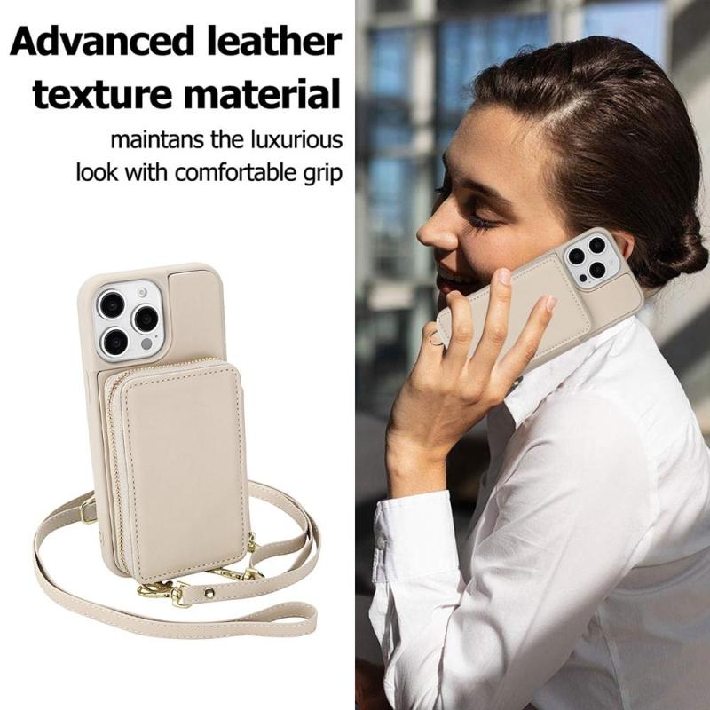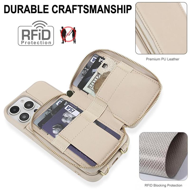 For iPhone 11 Pro Crossbody Zipper RFID Card Bag Phone Case(Apricot)