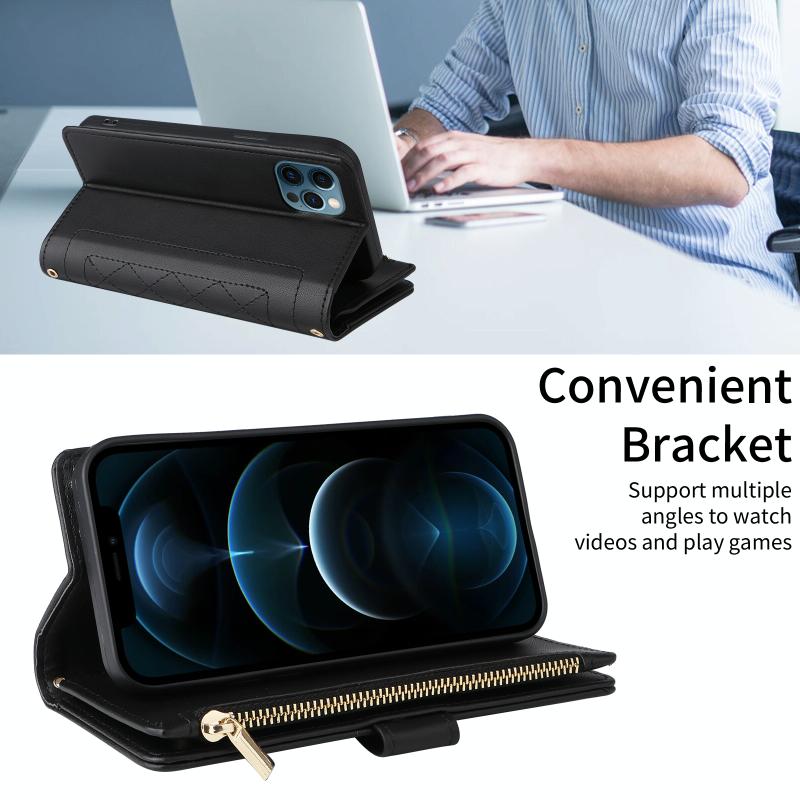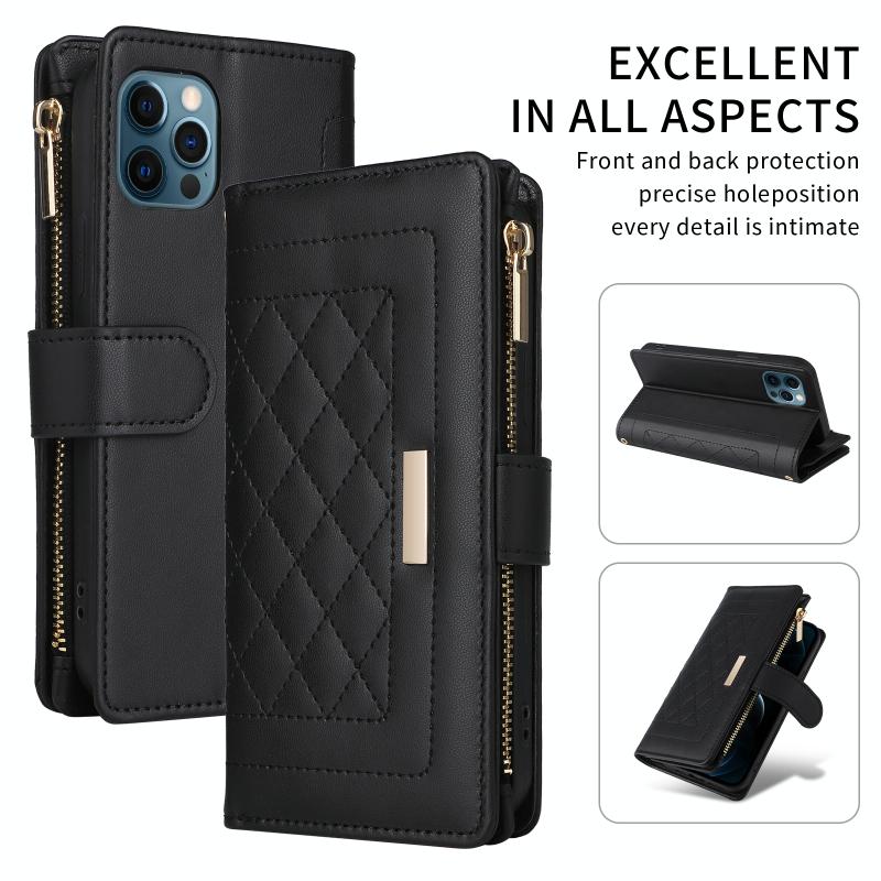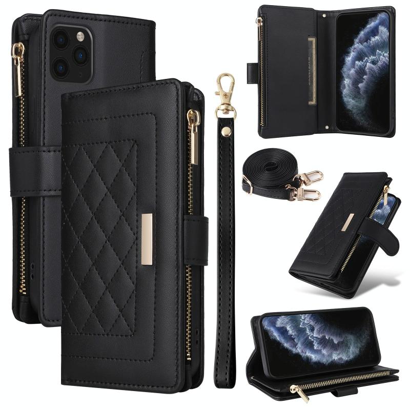 For iPhone 11 Pro Crossbody Zipper Wallet Rhombus Leather Phone Case(Black)