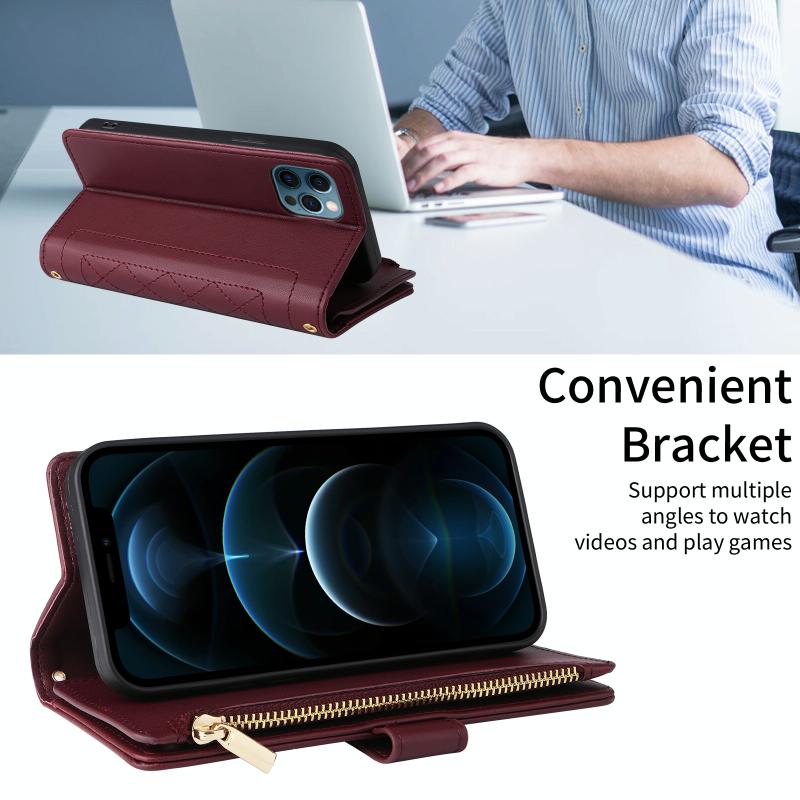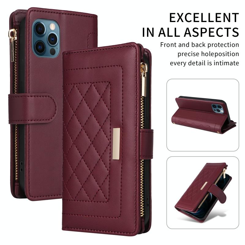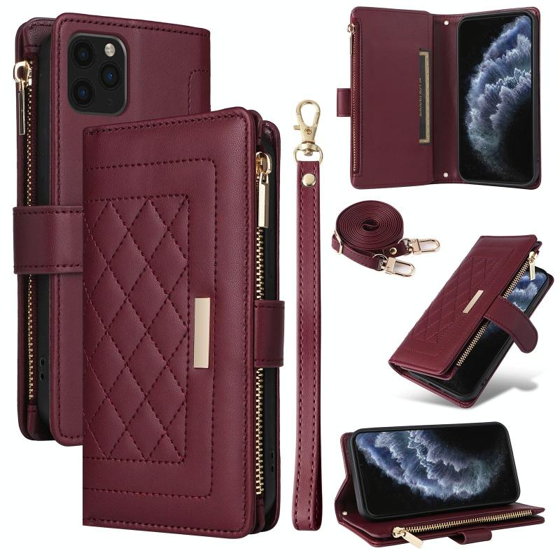 For iPhone 11 Pro Crossbody Zipper Wallet Rhombus Leather Phone Case(Wine Red)