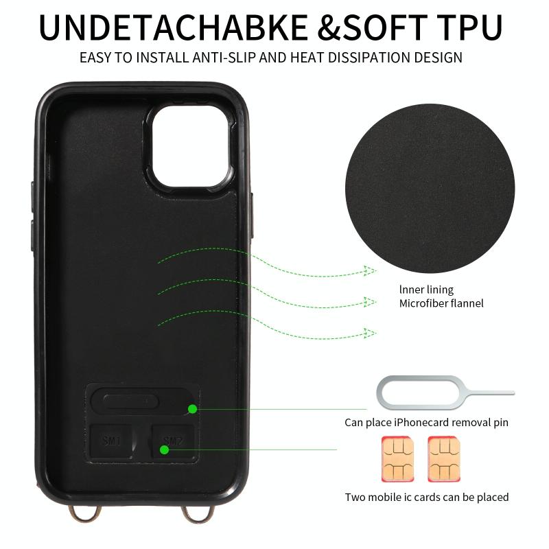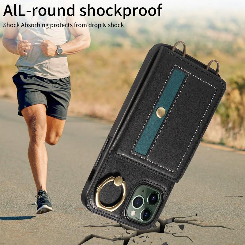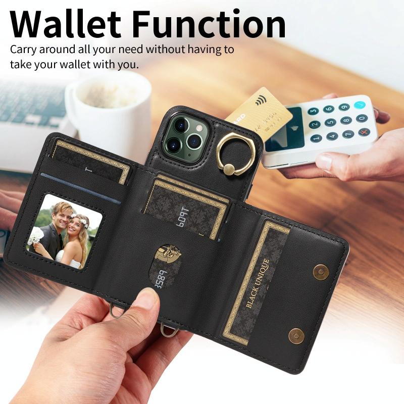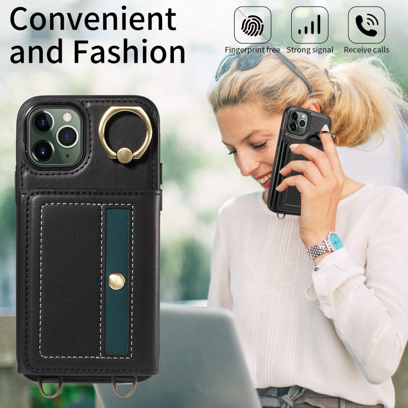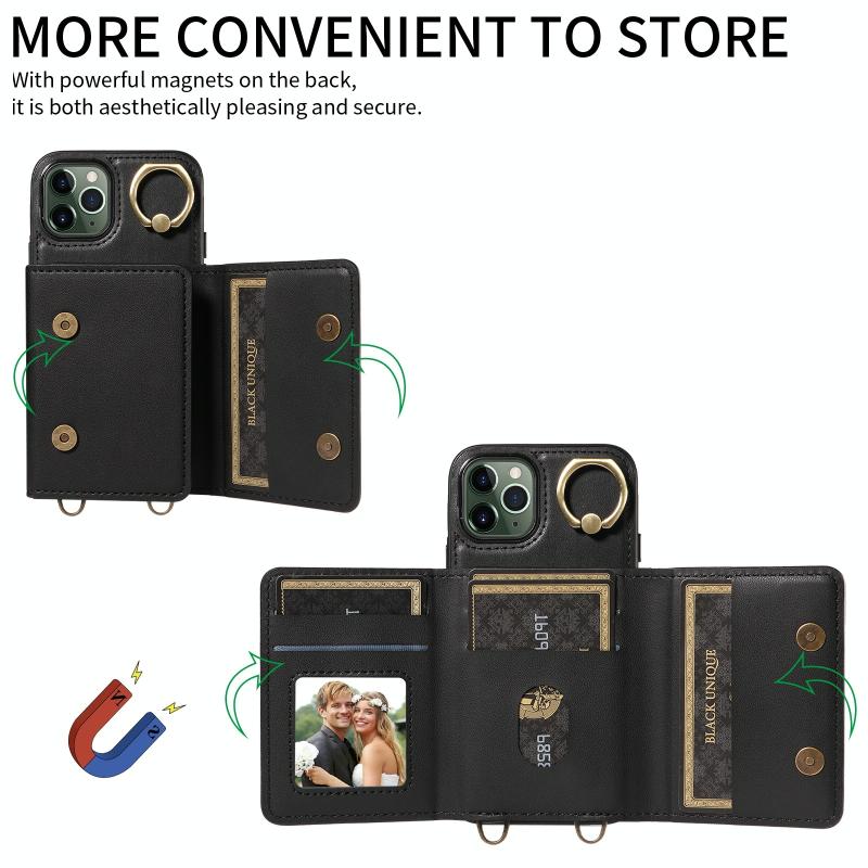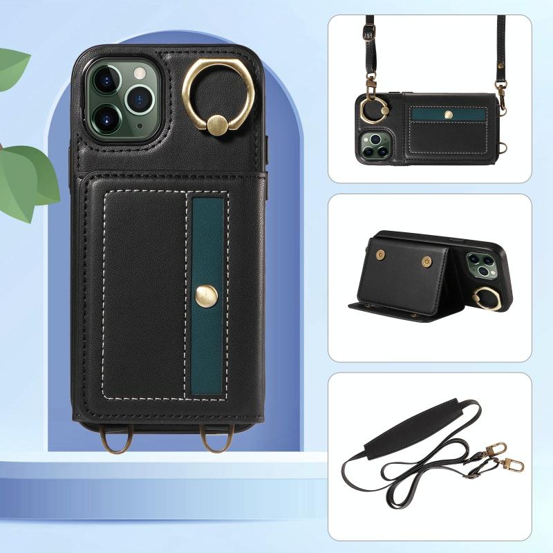 For iPhone 11 Pro Crossbodys Card Bag Ring Holder Leather Phone Case(Black)