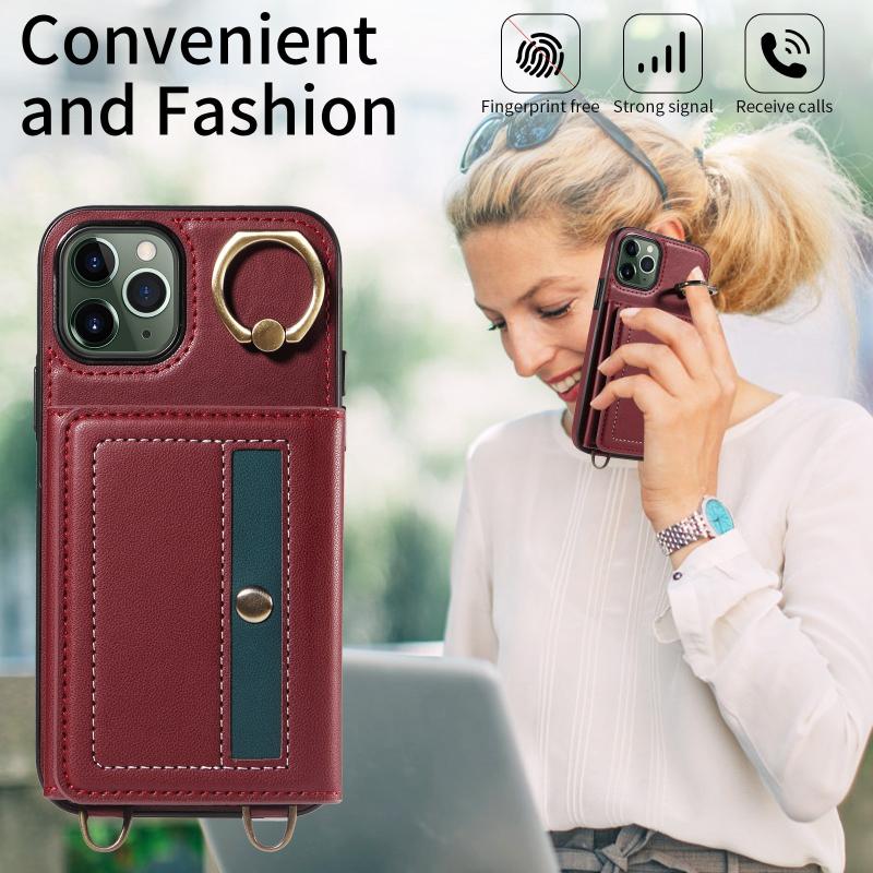 For iPhone 11 Pro Crossbodys Card Bag Ring Holder Leather Phone Case(Red)