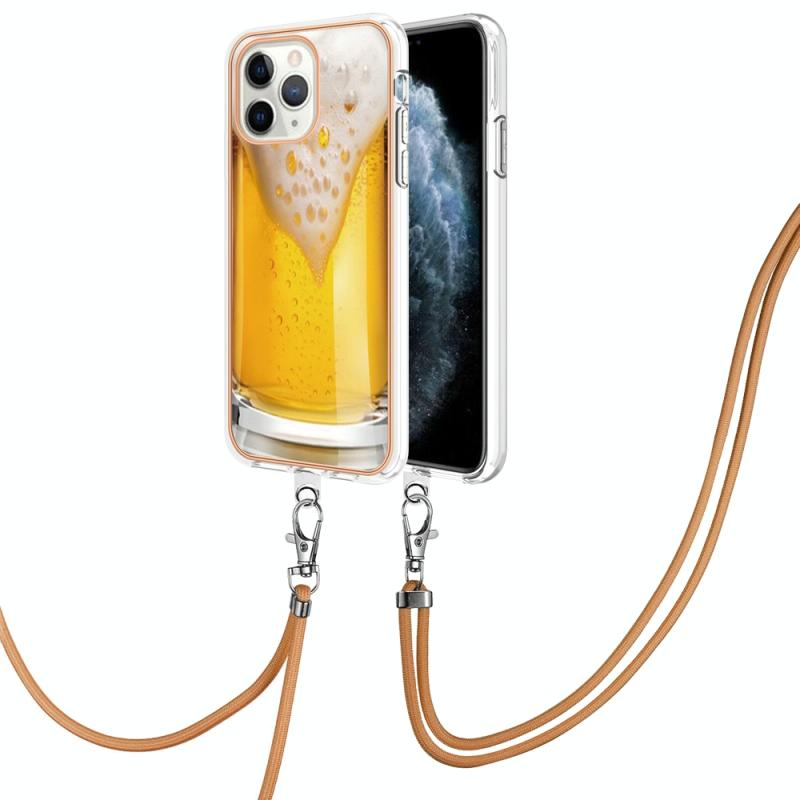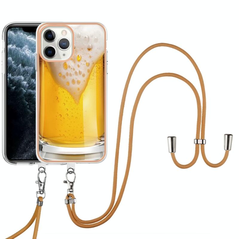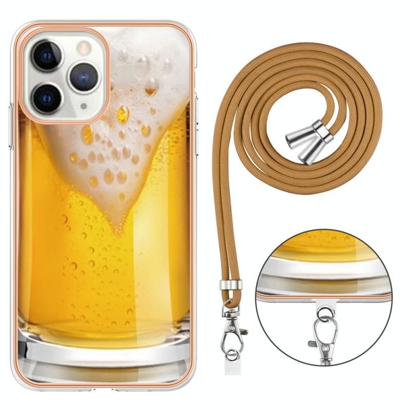 For iPhone 11 Pro Electroplating Dual-side IMD Phone Case with Lanyard(Draft Beer)