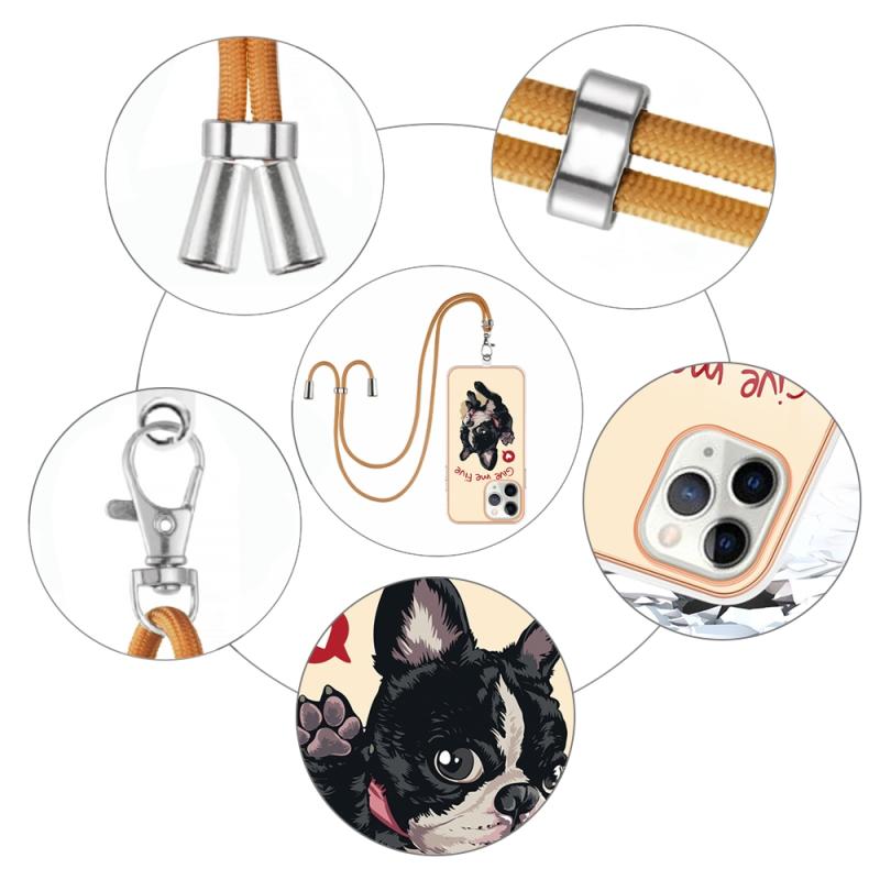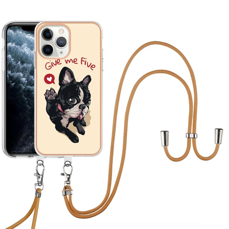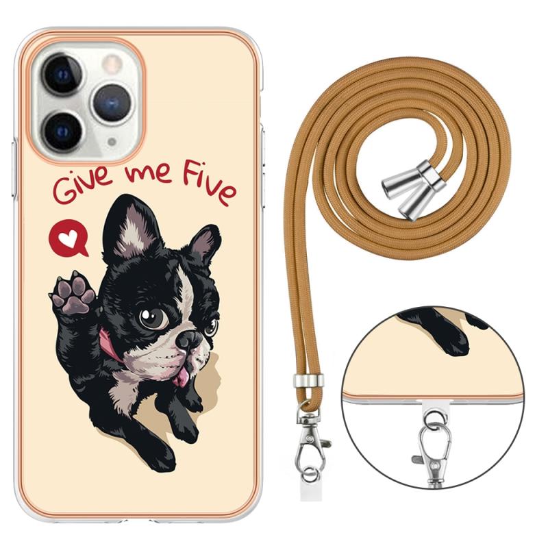 For iPhone 11 Pro Electroplating Dual-side IMD Phone Case with Lanyard(Lucky Dog)