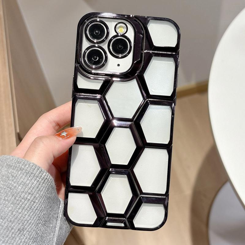 For iPhone 11 Pro Electroplating Laser Engraving 3D Honeycomb Clear TPU Phone Case(Black)
