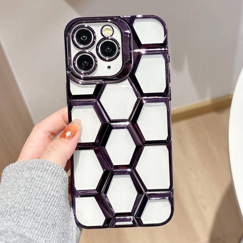 For iPhone 11 Pro Electroplating Laser Engraving 3D Honeycomb Clear TPU Phone Case(Purple)