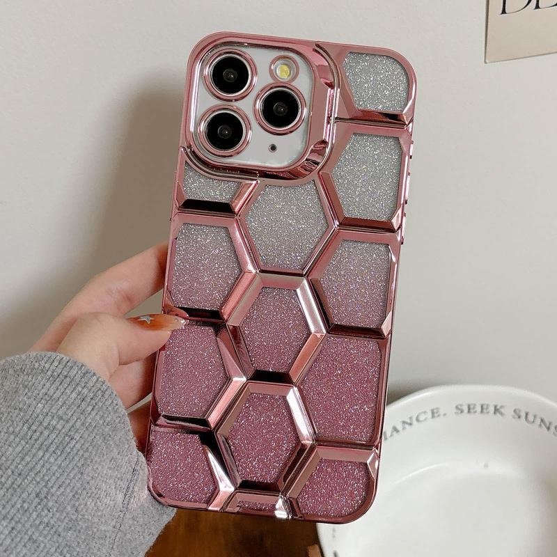 For iPhone 11 Pro Electroplating Laser Engraving 3D Honeycomb Glitter TPU Phone Case(Pink)