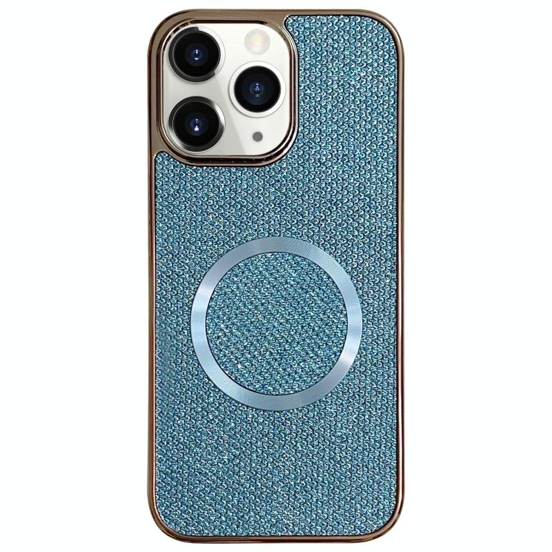 For iPhone 11 Pro Electroplating PC Glitter Grain MagSafe Phone Case(Blue)