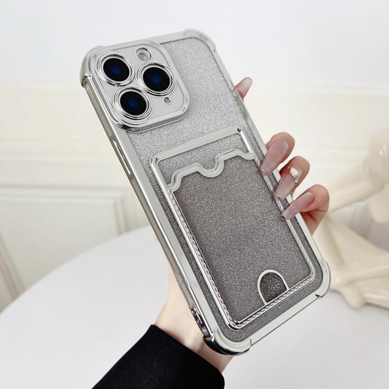 For iPhone 11 Pro Four-cornered Glitter Electroplated Card Bag TPU Phone Case(Silver)