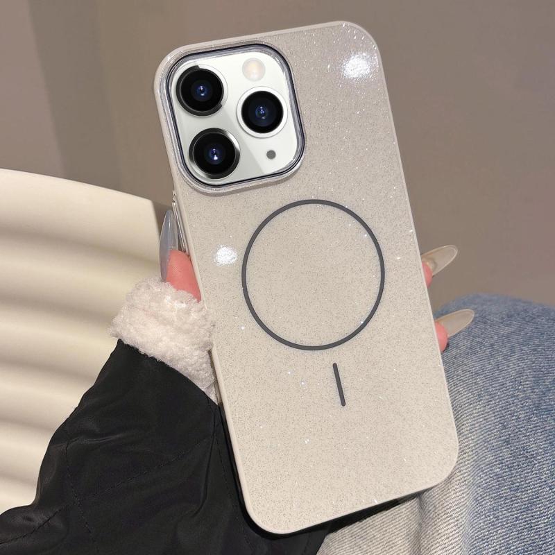 For iPhone 11 Pro Glitter MagSafe Thin Circle TPU Phone Case(White)