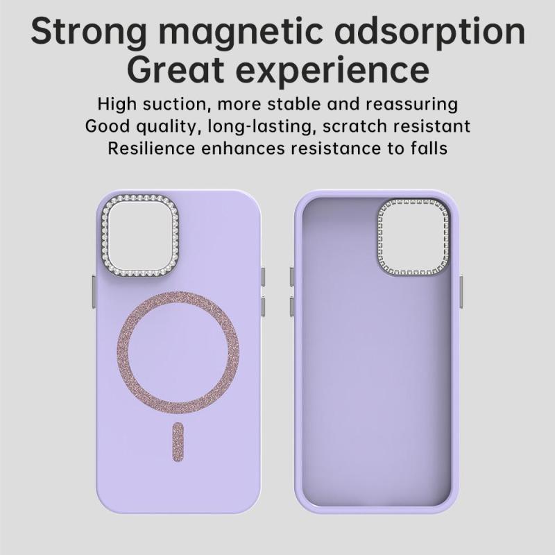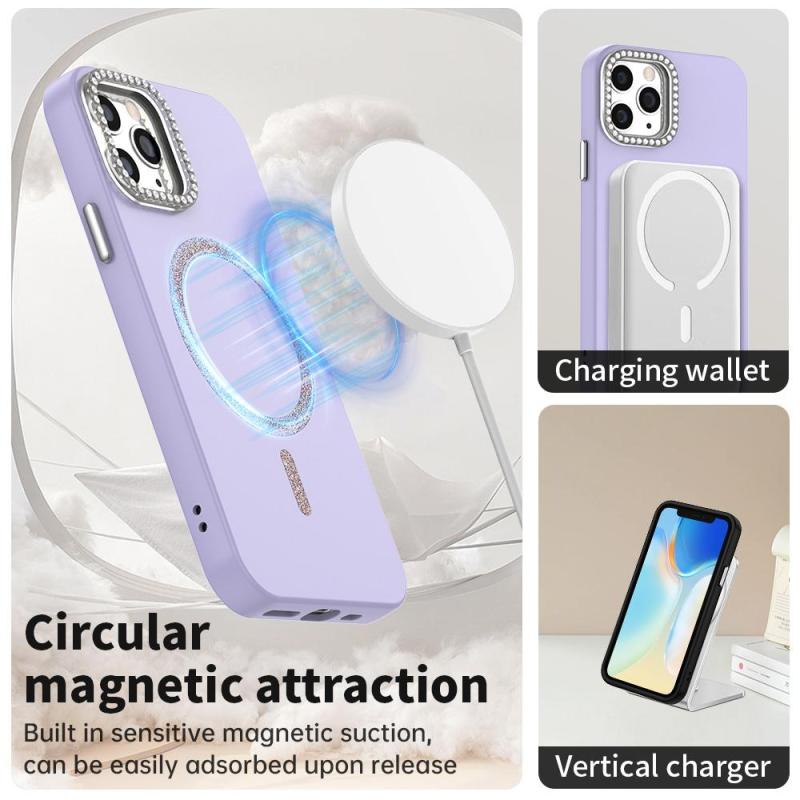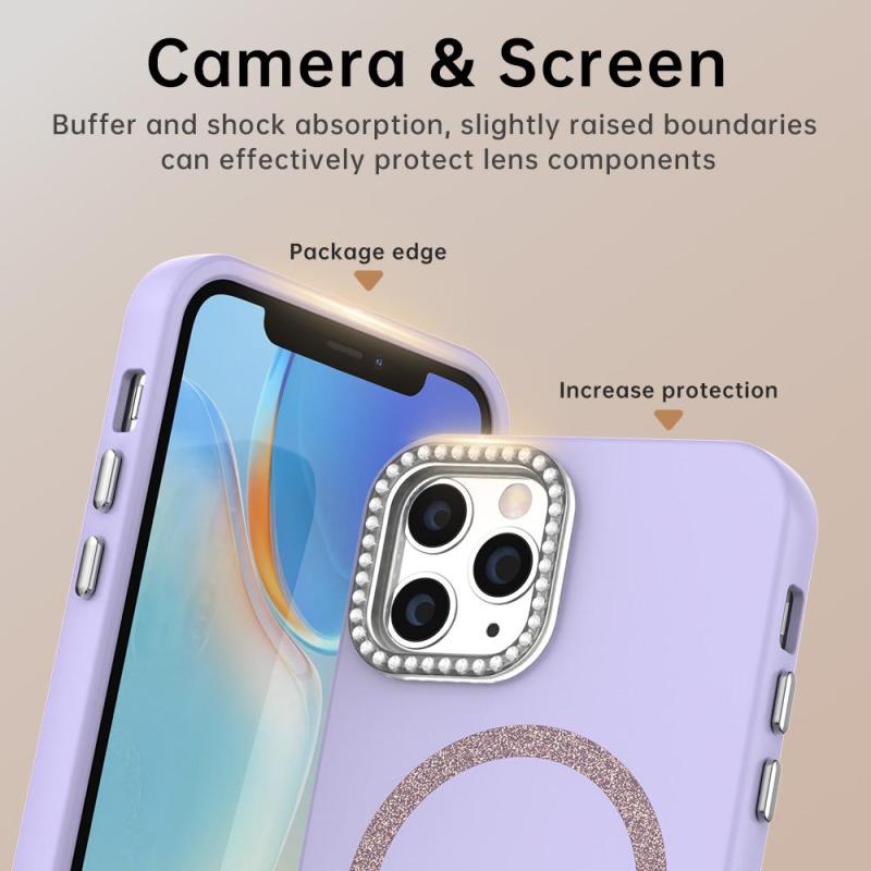 For iPhone 11 Pro Glitter Rhinestones Series Magsafe PC Hybrid TPU Phone Case(Purple)