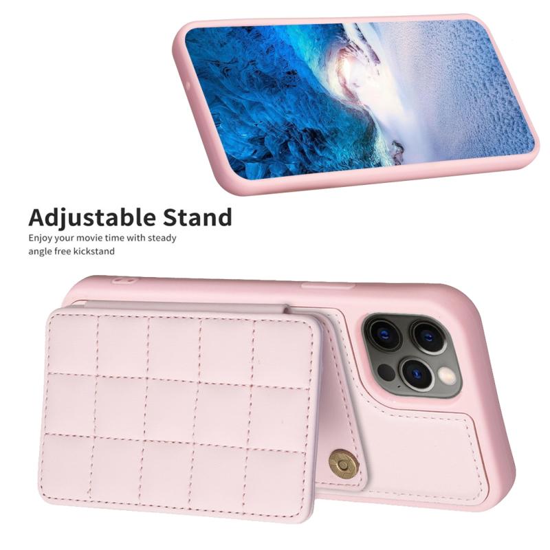 For iPhone 11 Pro Grid Card Slot Holder Phone Case(Pink)