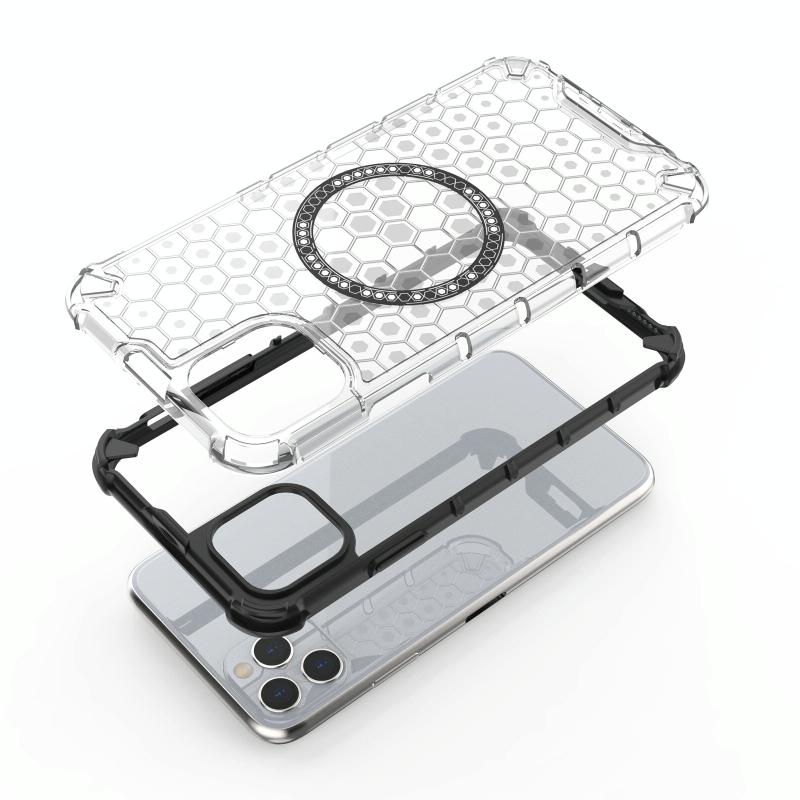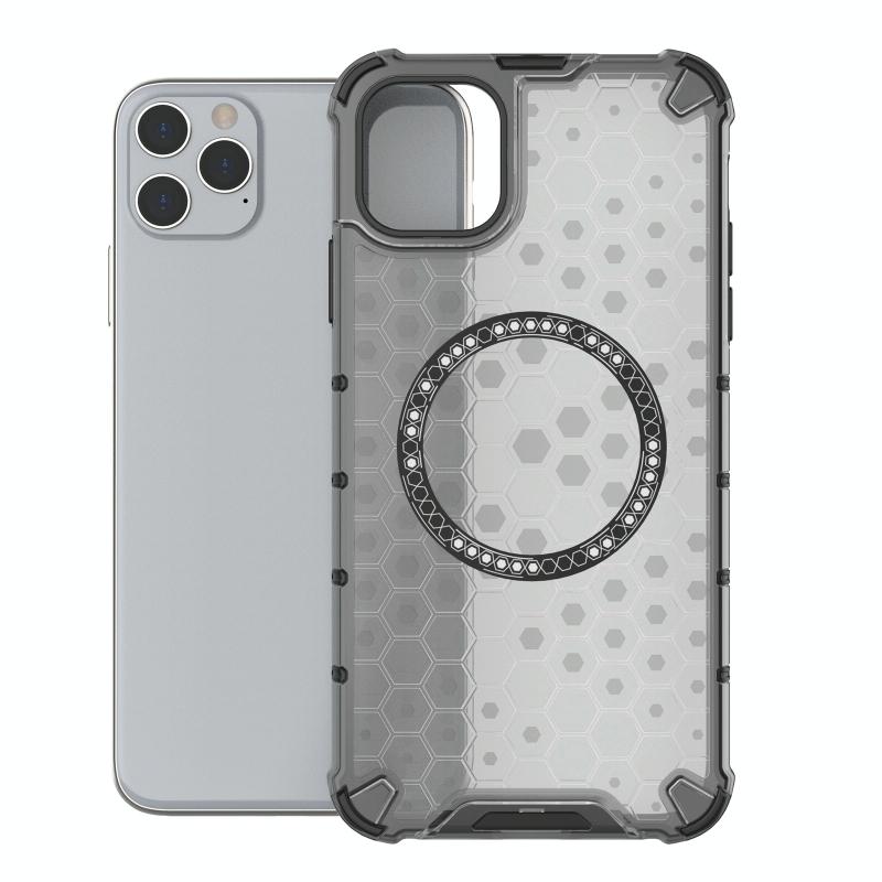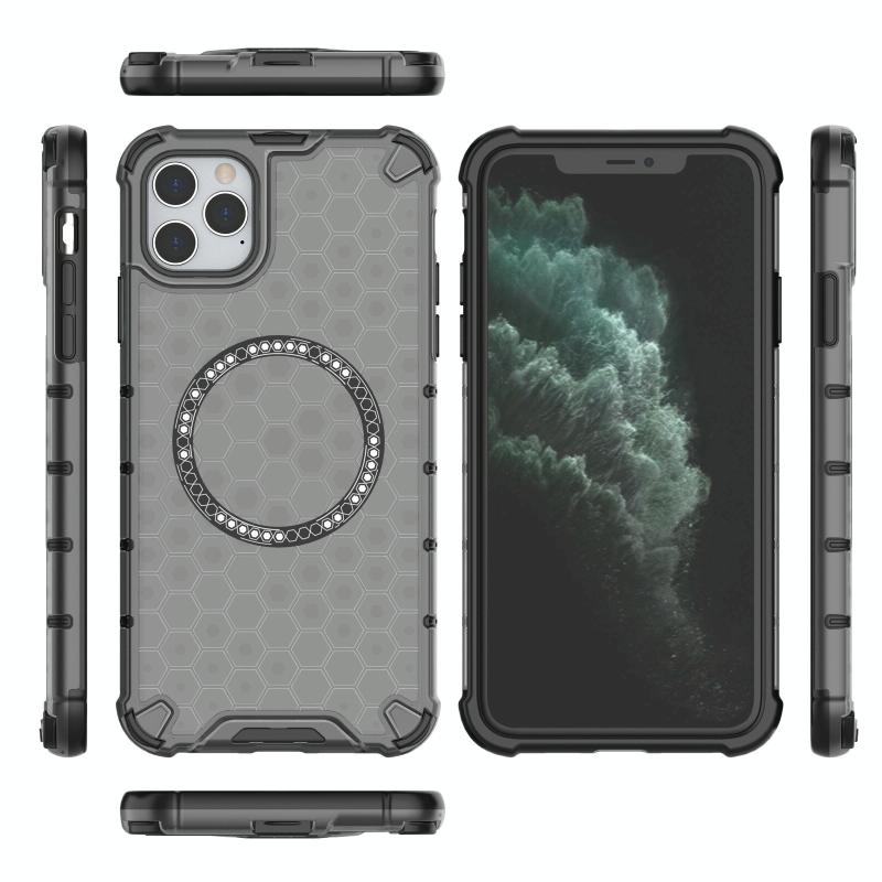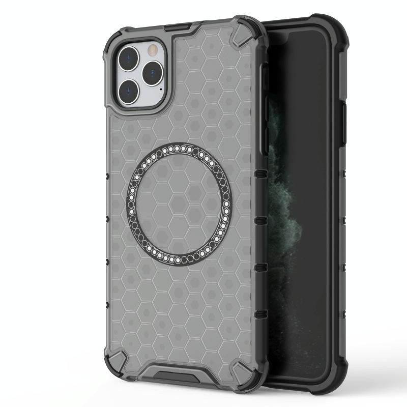 For iPhone 11 Pro Honeycomb Magnetic Ring Shockproof Phone Case(Black)