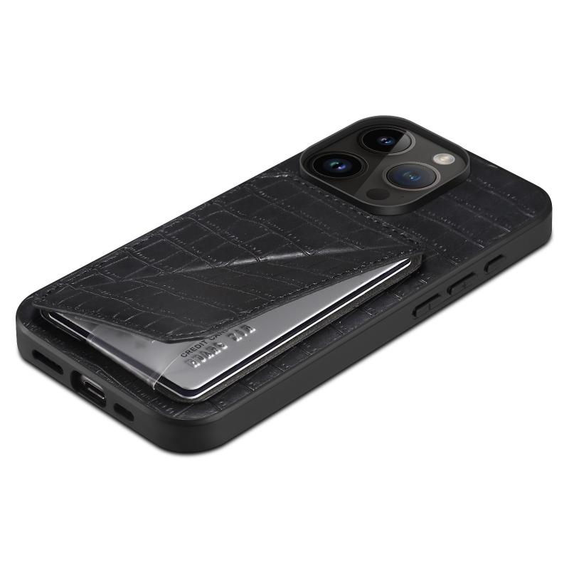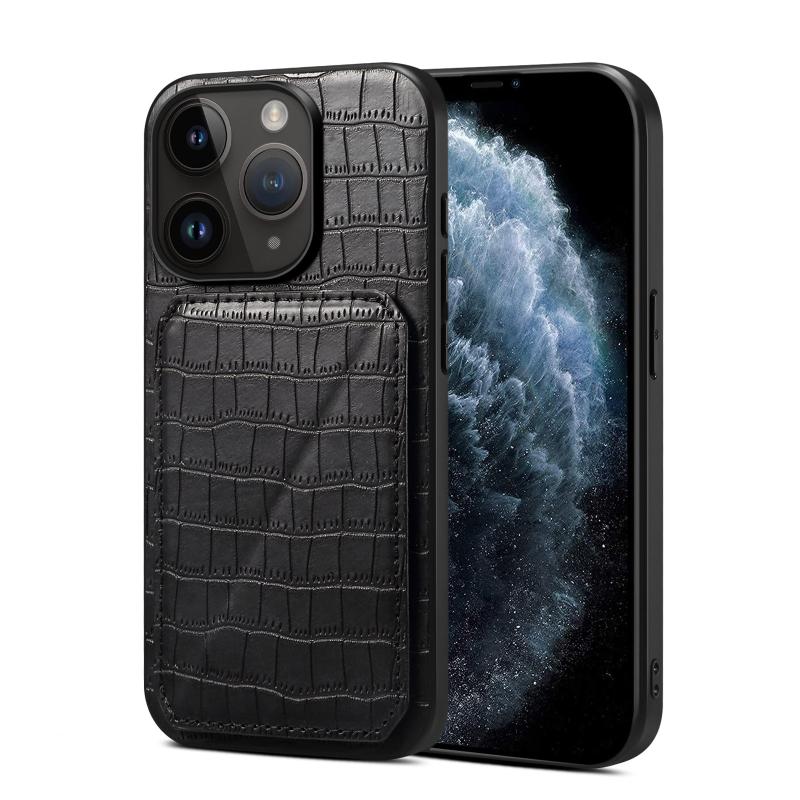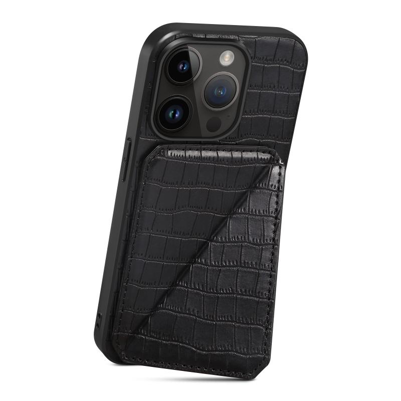 For iPhone 11 Pro Imitation Crocodile Leather Back Phone Case with Holder(Black)