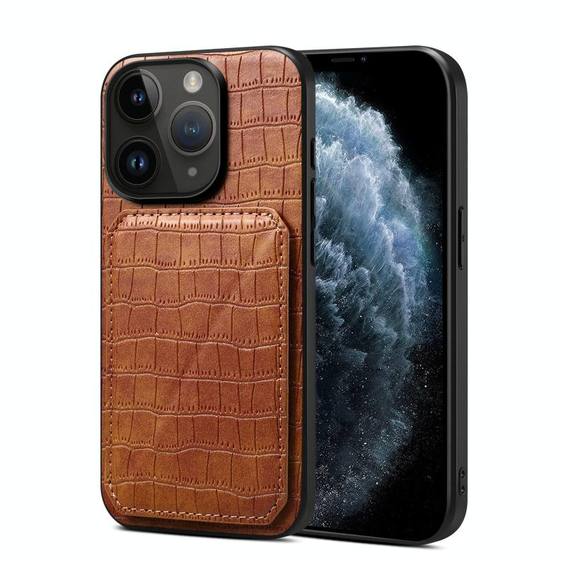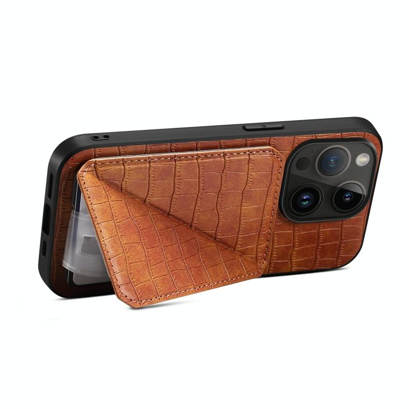 For iPhone 11 Pro Imitation Crocodile Leather Back Phone Case with Holder(Brown)