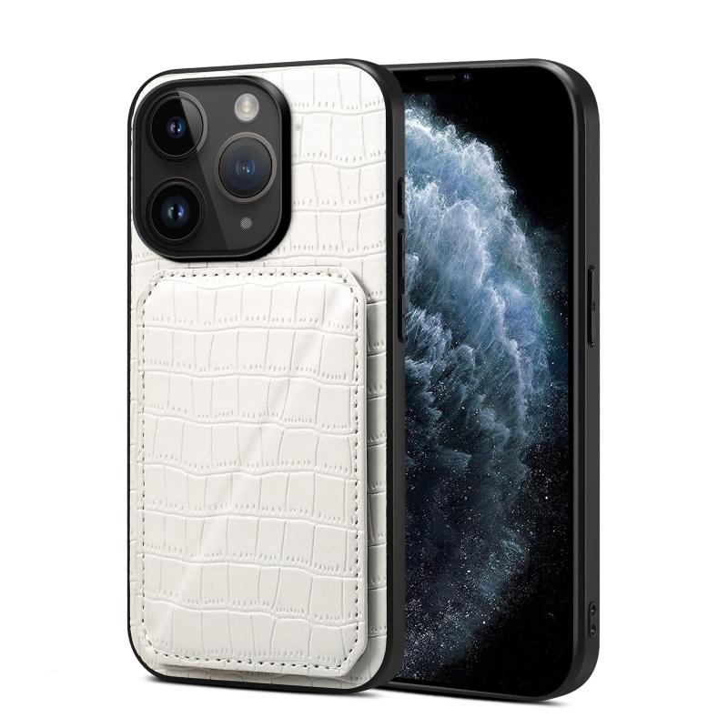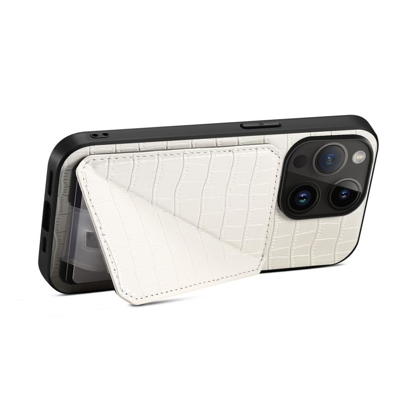 For iPhone 11 Pro Imitation Crocodile Leather Back Phone Case with Holder(White)