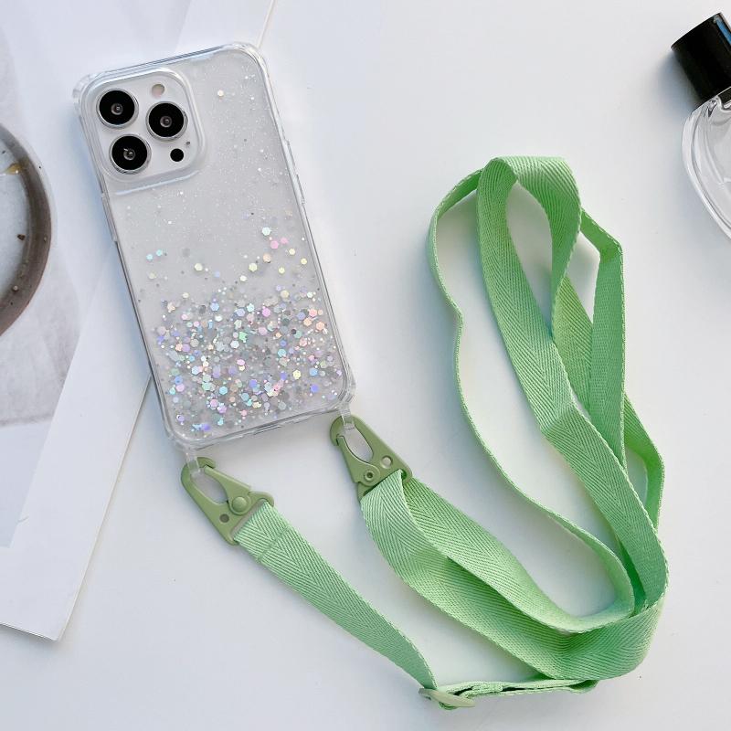 For iPhone 11 Pro Lanyard Glitter Epoxy Clear Phone Case (Green)