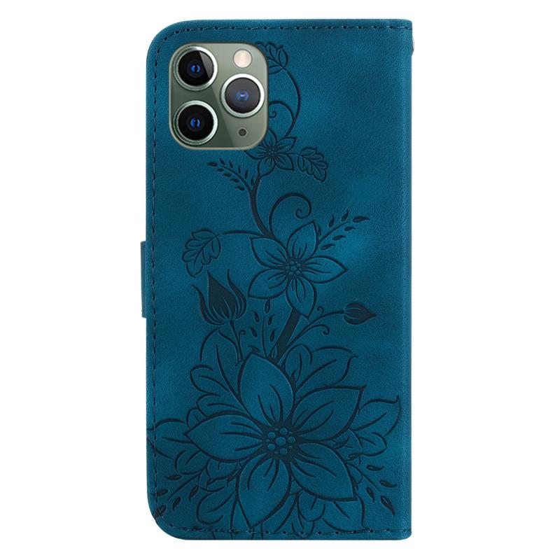 For iPhone 11 Pro Lily Embossed Leather Phone Case(Dark Blue)