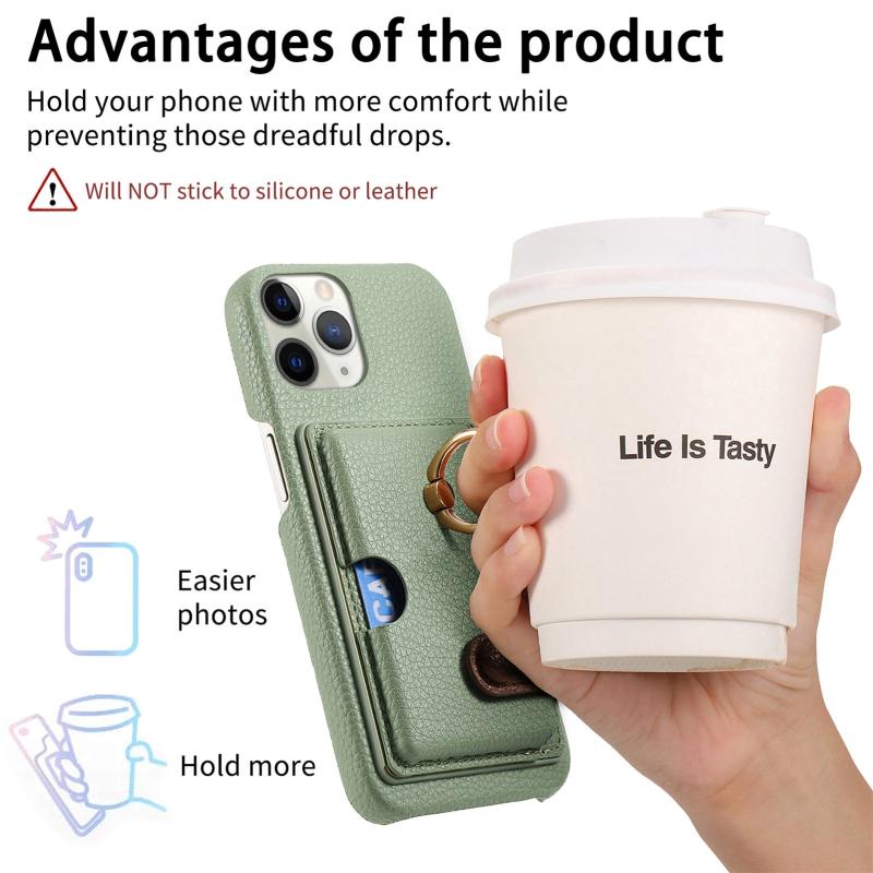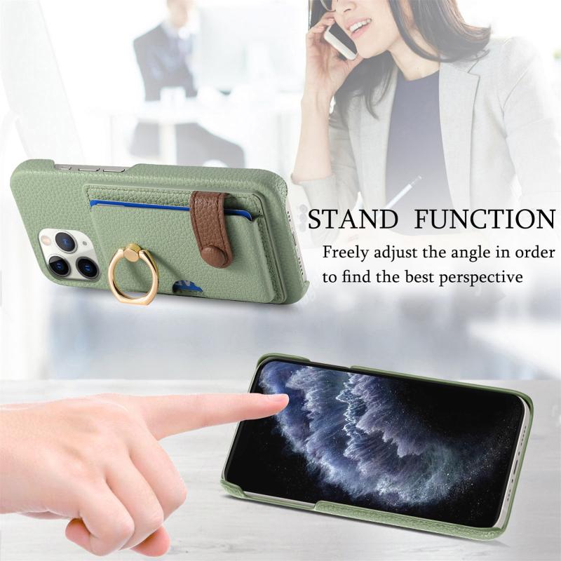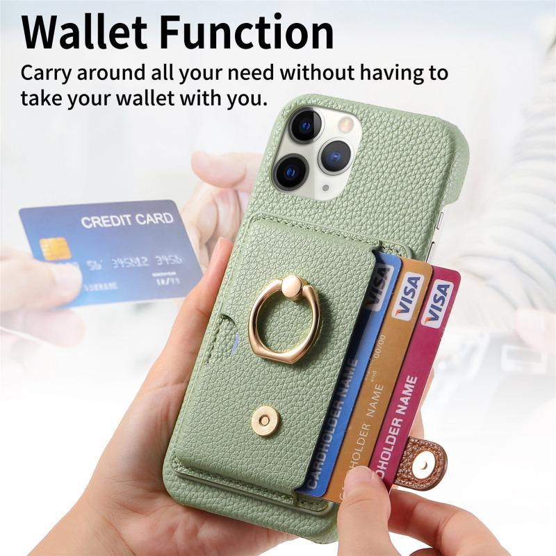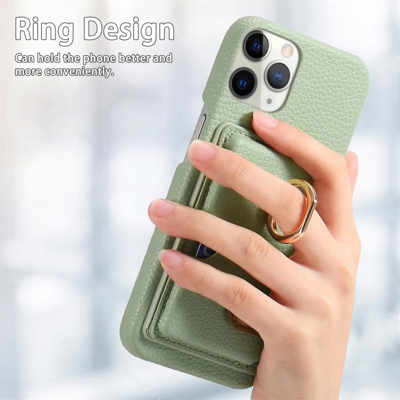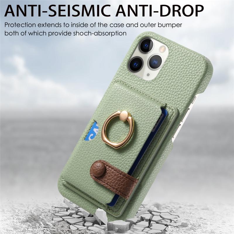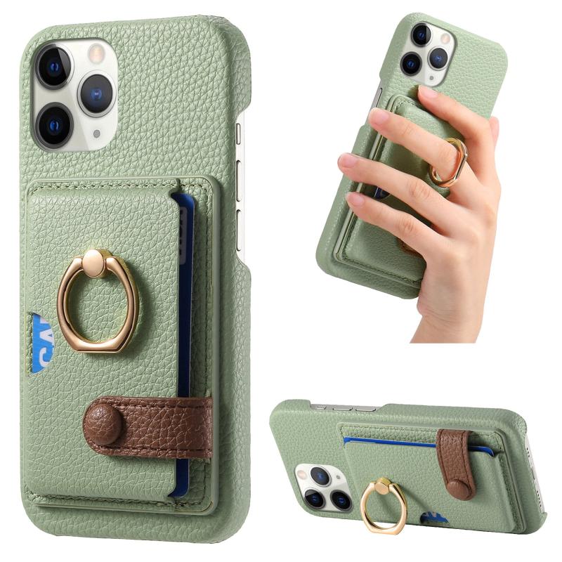 For iPhone 11 Pro Litchi Leather Oil Edge Ring Card Back Phone Case(Tea Green)
