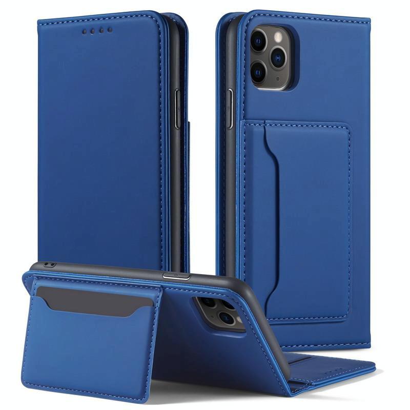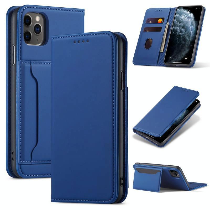 For iPhone 11 Pro Magnetism Skin Feel Card Holder Leather Phone Case(blue)