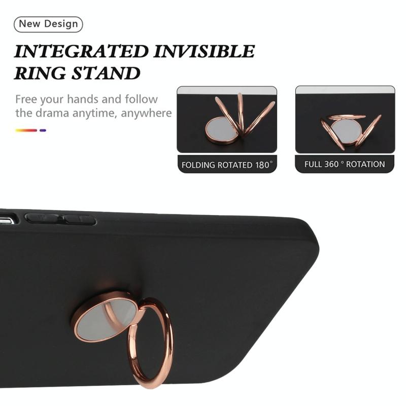 For iPhone 11 Pro Matte Ring Holder TPU Phone Case(Rose Gold)