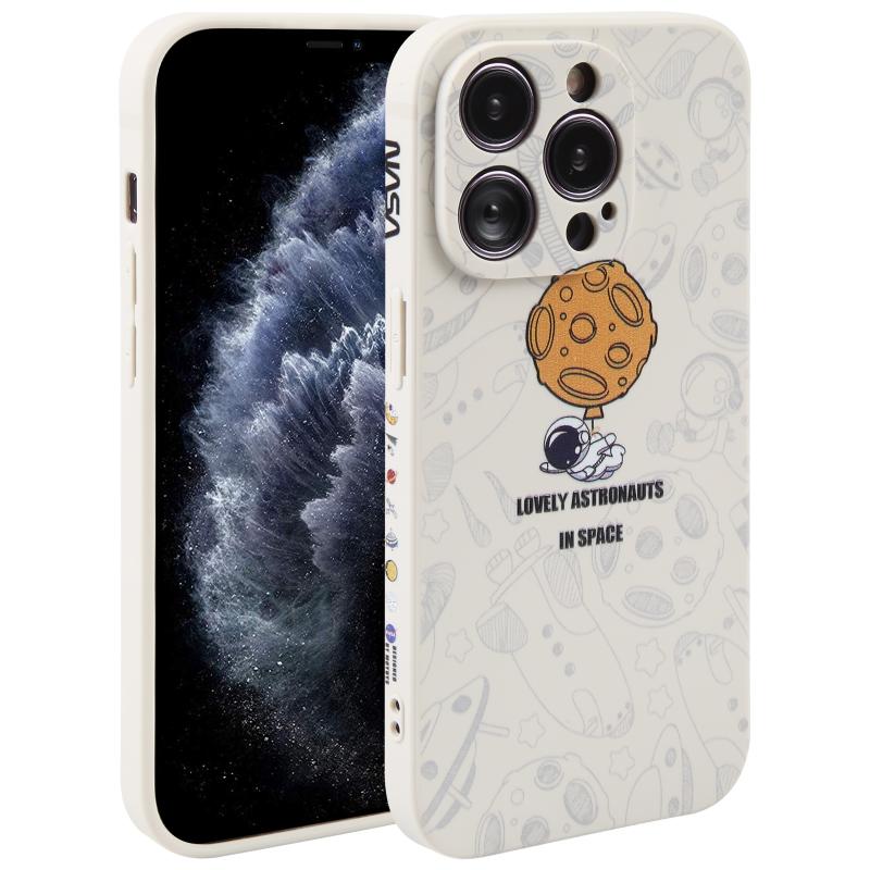 For iPhone 11 Pro Max Astronaut Pattern Silicone Straight Edge Phone Case(Lovely Astronaut-White)