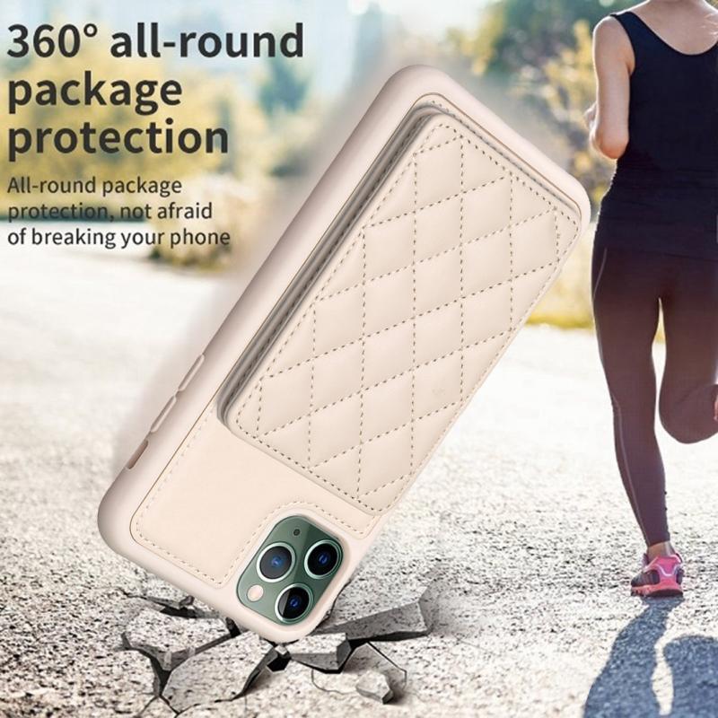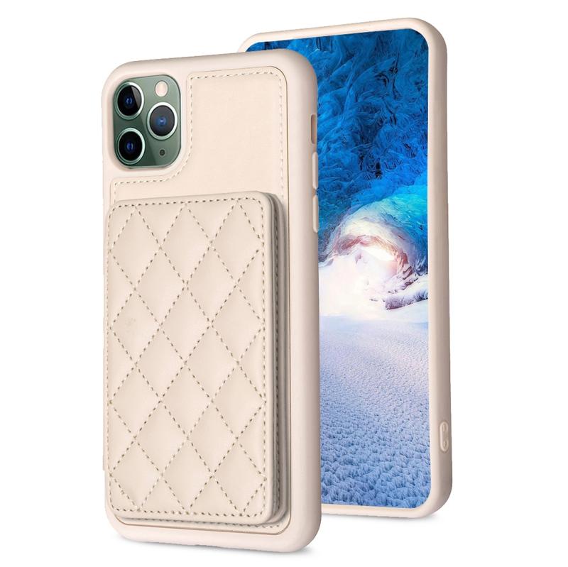 For iPhone 11 Pro Max BF25 Square Plaid Card Bag Holder Phone Case(Beige)