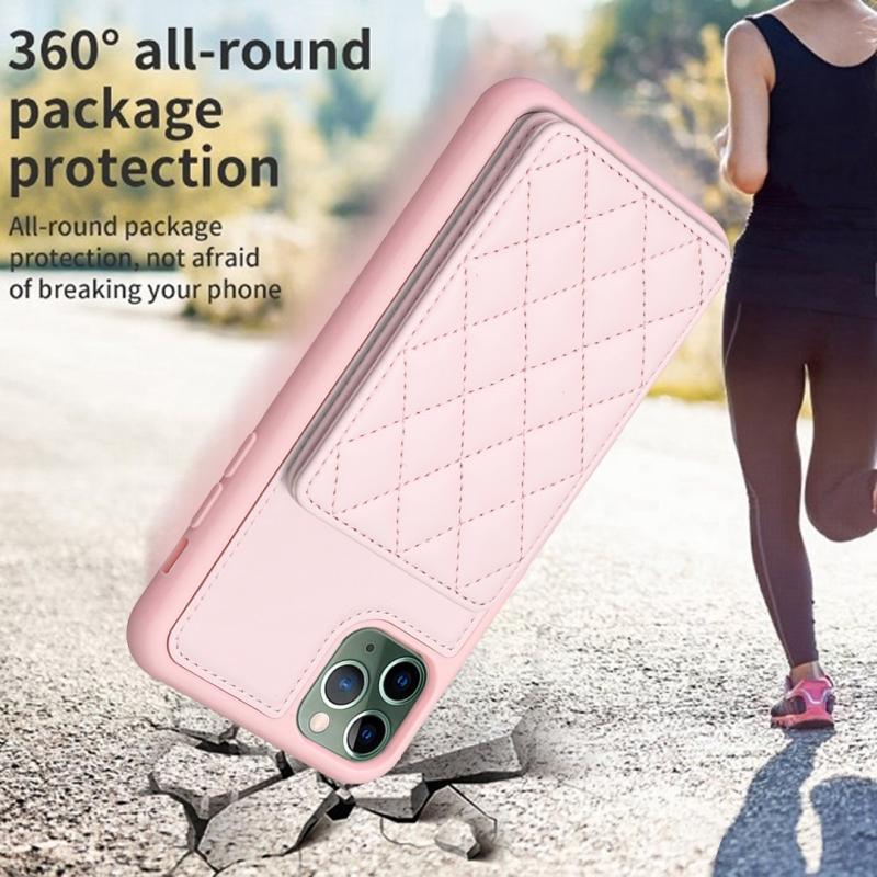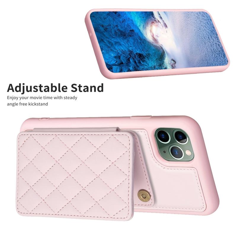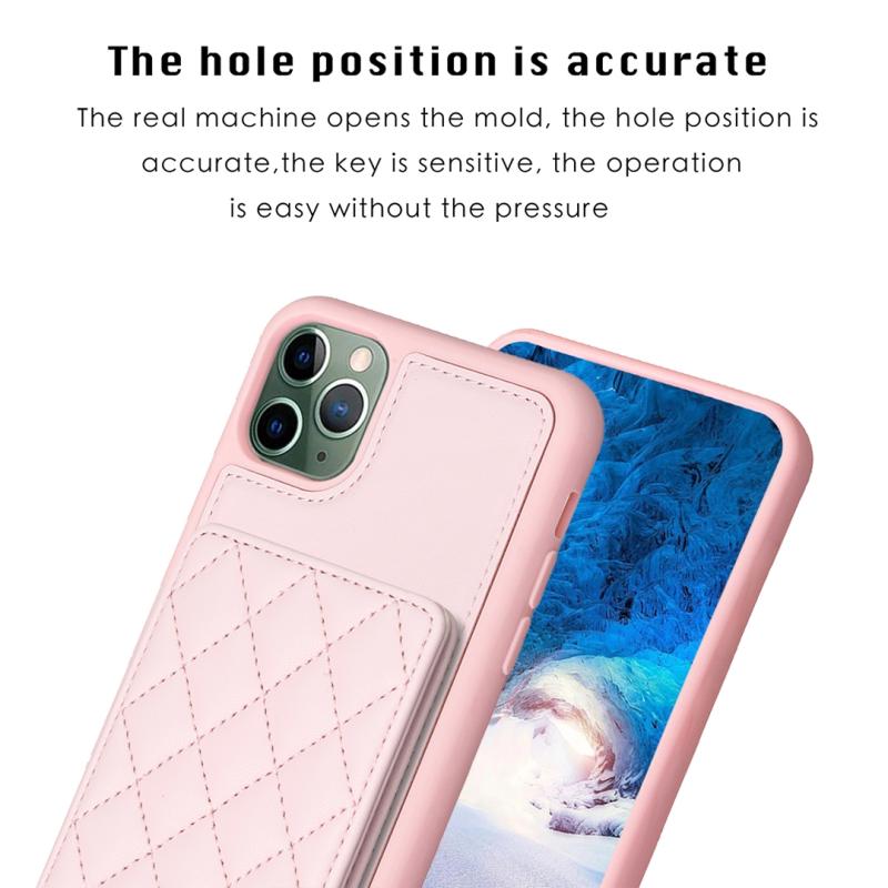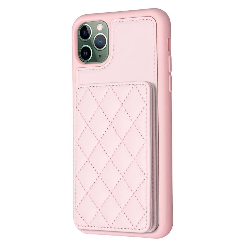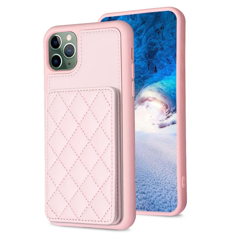 For iPhone 11 Pro Max BF25 Square Plaid Card Bag Holder Phone Case(Pink)
