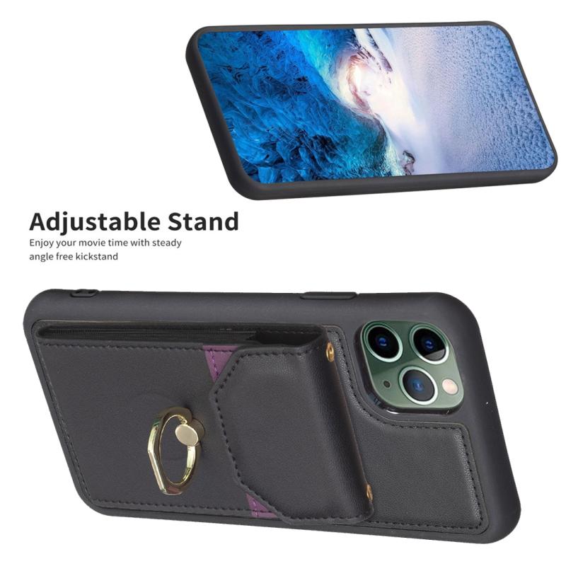 For iPhone 11 Pro Max BF29 Organ Card Bag Ring Holder Phone Case(Black)